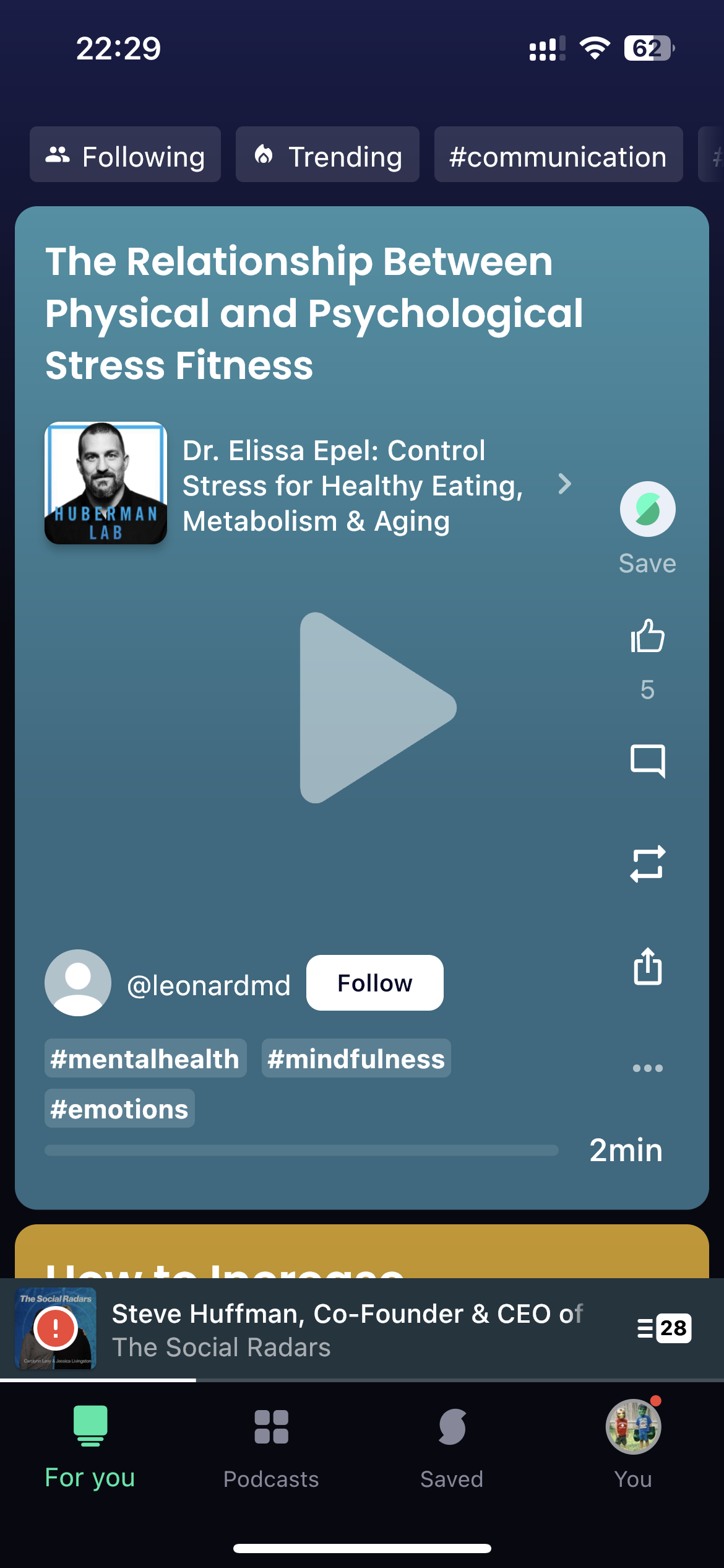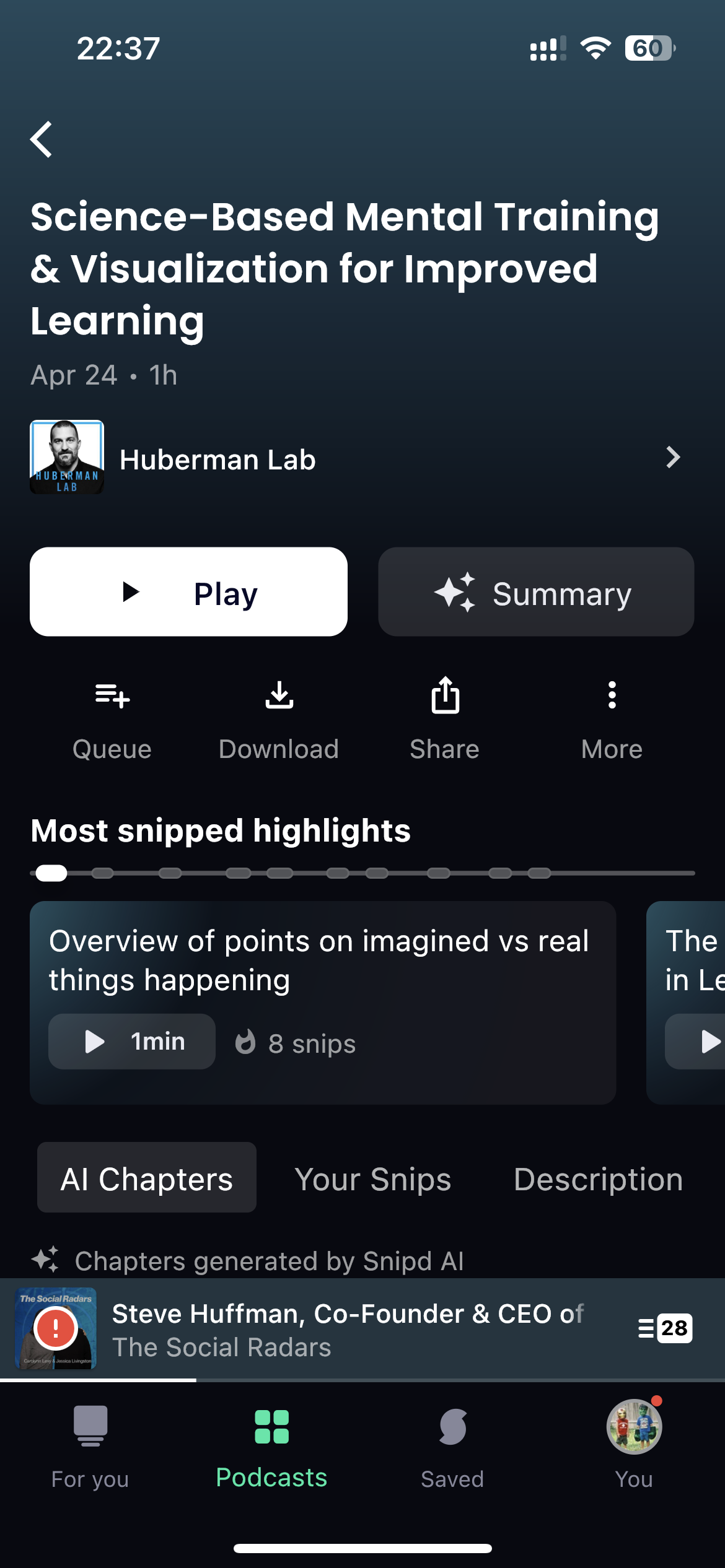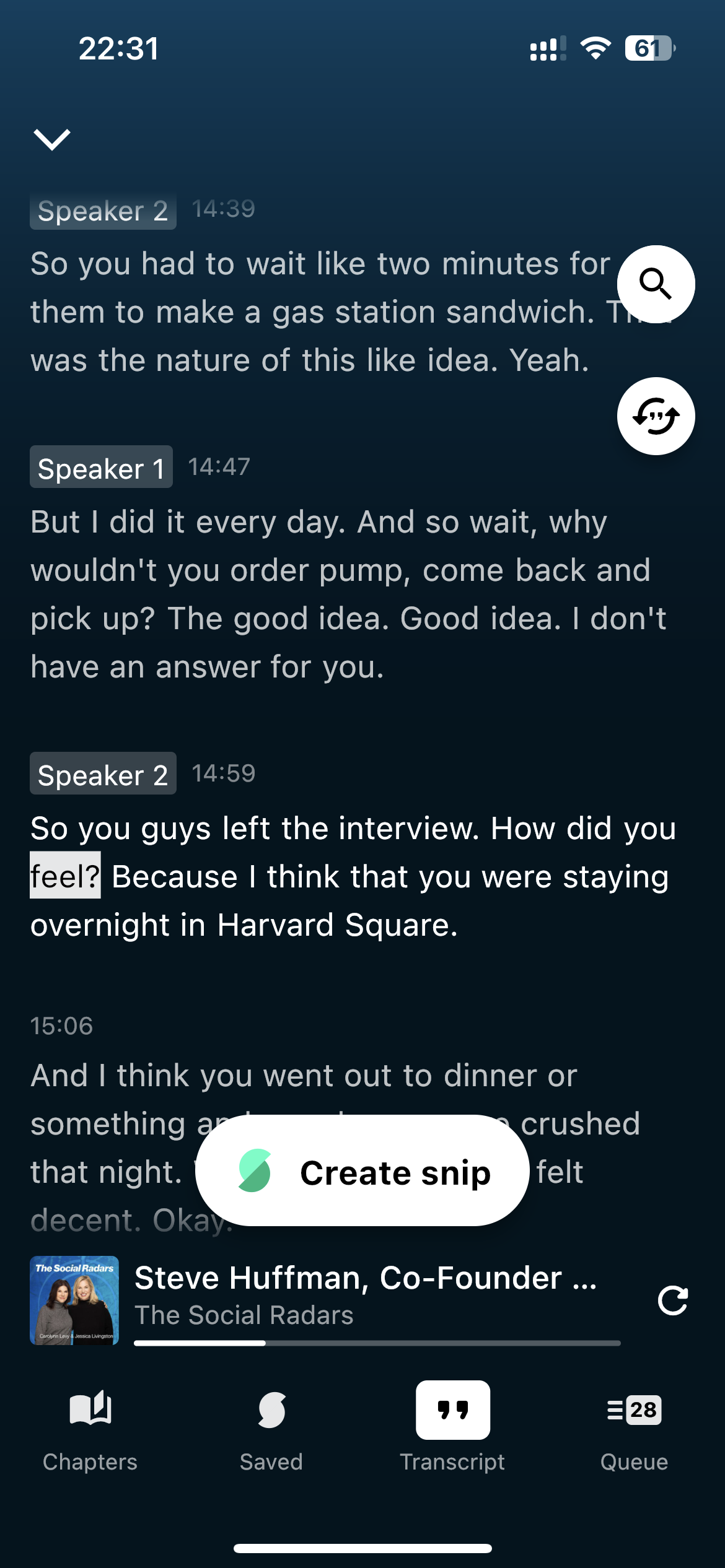 你可以看到当期播客的“most snipped highlights”,也就是用户最多标记的片段内容。