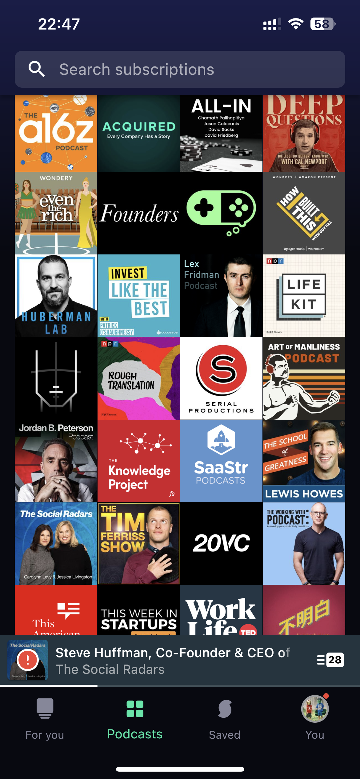 与中文播客相比,英文播客生态更加成熟广泛,因此你可以直接通过播客获取到许多“第一手”的观点,例如Elon Musk, Sam Altman这些“大佬”会经常上播客节目。此外,还有许多专业领域的优秀科学家会分享最前沿的研究成果,代表性的就是关注健康的Dr.Humberman。