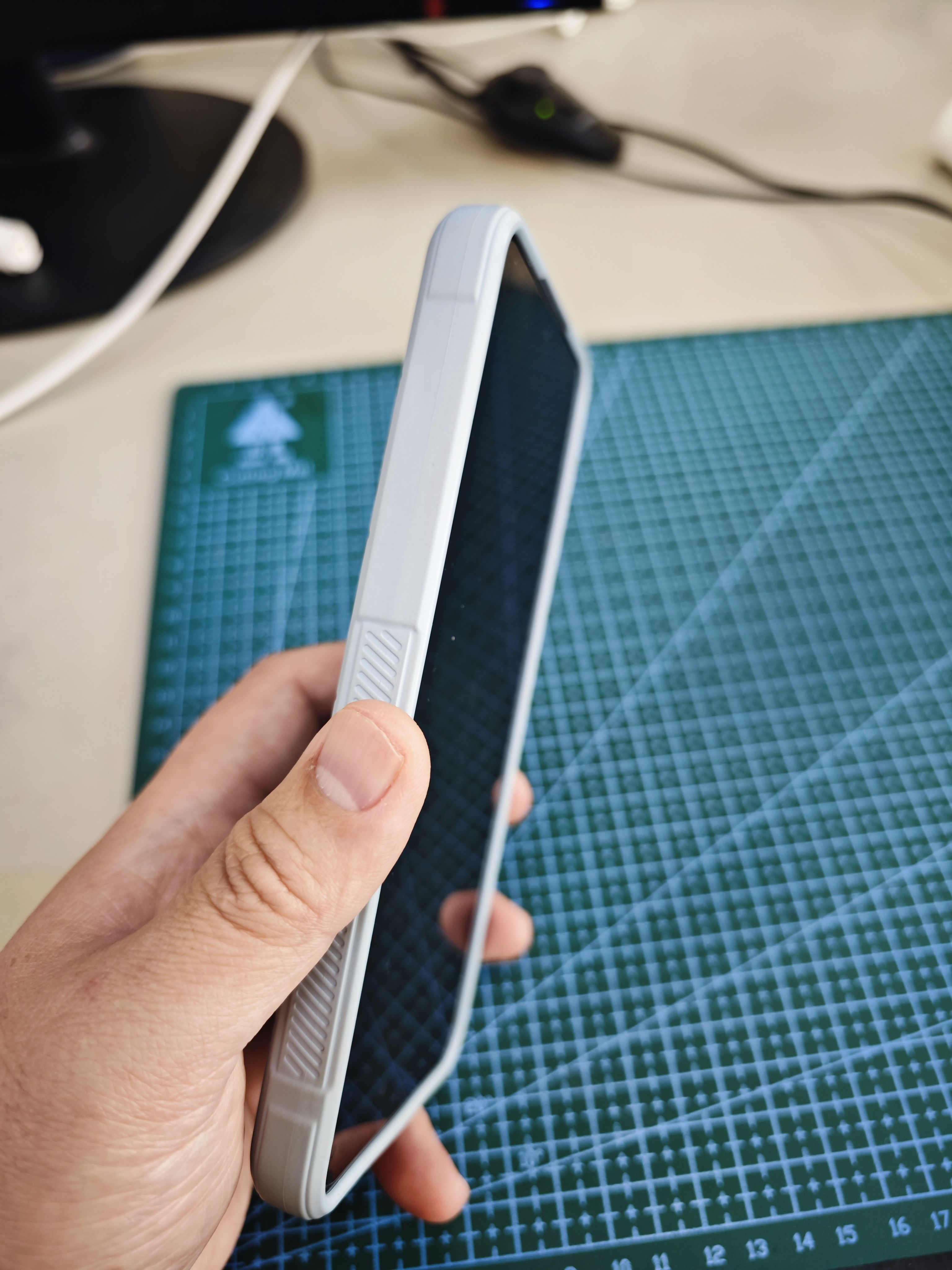 3、手感:有人觉得手机重或者厚,对我完全不是问题,之前一个手机用的是红米K50 ultra,戴厚壳如图5,13 ultra戴上原装壳后手持部分还比不上我之前手机的厚度。我浏览信息一般单手持机,打字双手持机。手感