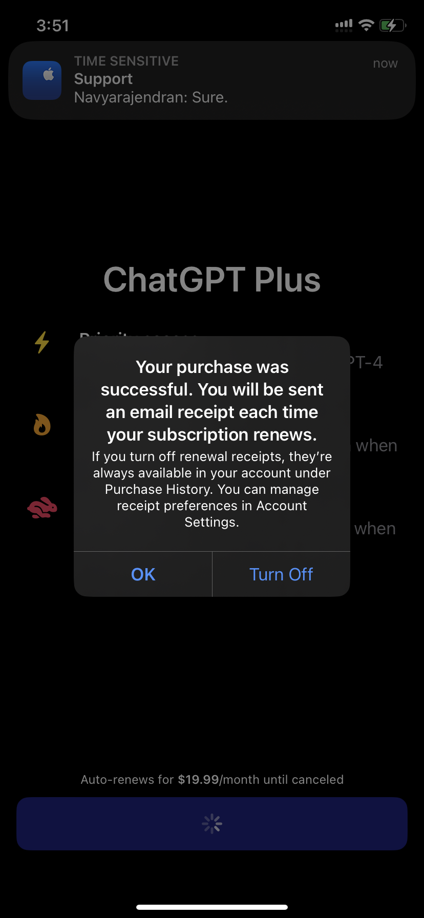 ChatGPT iOS通过账户余额开通PLUS一直提示购买无法完成的看这里哈: