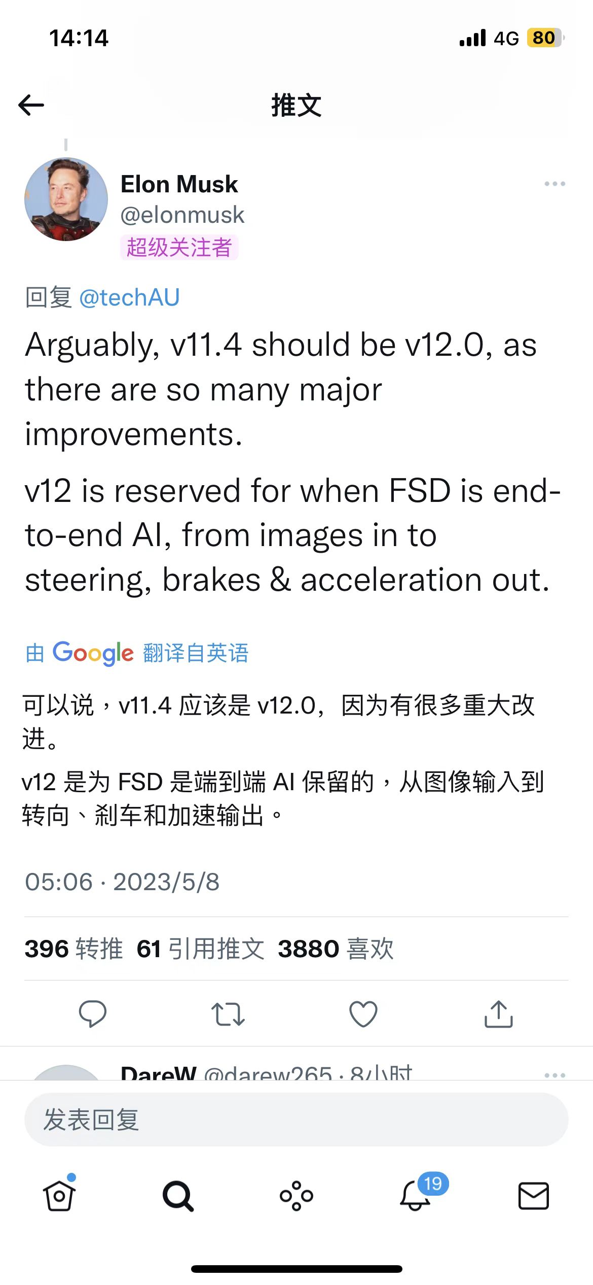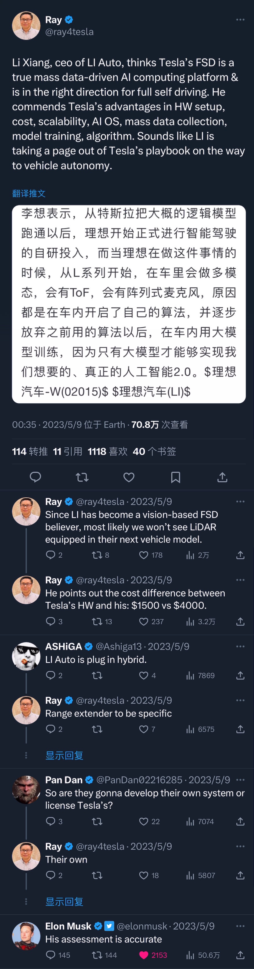 - 结论是,试驾的同学表示,他认为尽管FSD离真正的full self-driving还很远,但辅助驾驶的战争已经结束了。目前的FSD价格是1.5万刀,如果这个产品放在中国卖3万块钱,会有很多人买。