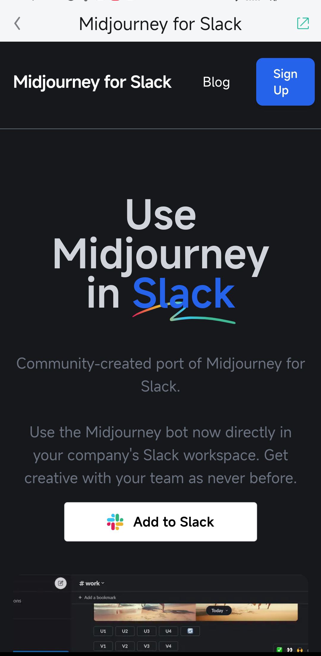 添加 midjourney 到 slack 的链接: