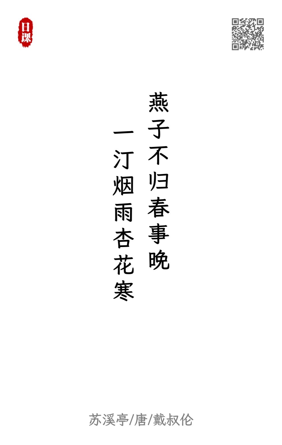 燕子不归春事晚,一汀烟雨杏花寒。
