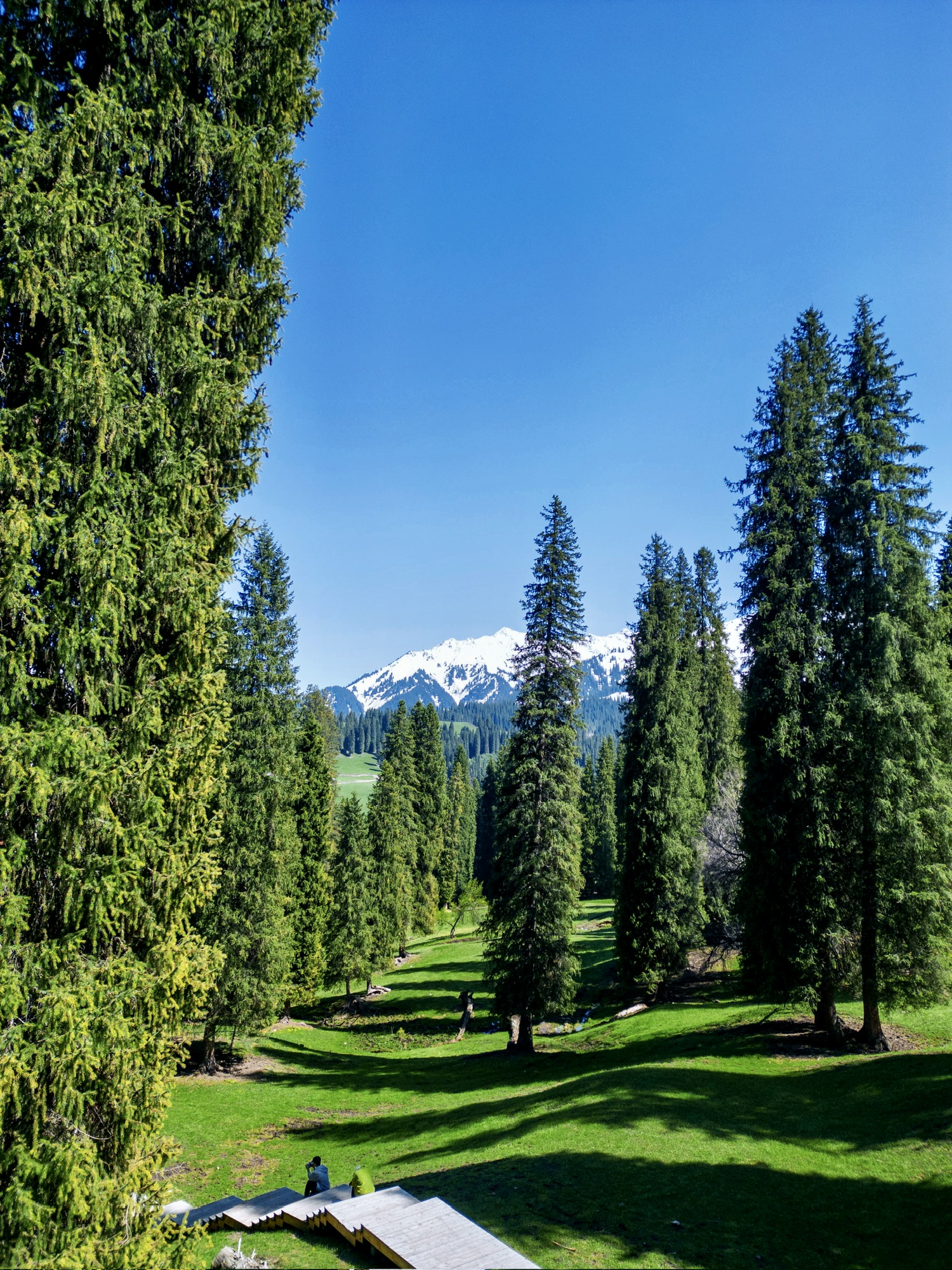 🌟齐梦德是这里的精华,木栈道来回徒步两小时,不想徒步的朋友稍微走10份钟也能看到非常震撼的景色了——草原上有个小木屋,远处是茂密的云杉林,雪山近在眼前,仿佛就是现实版的《海蒂与爷爷》的场景!