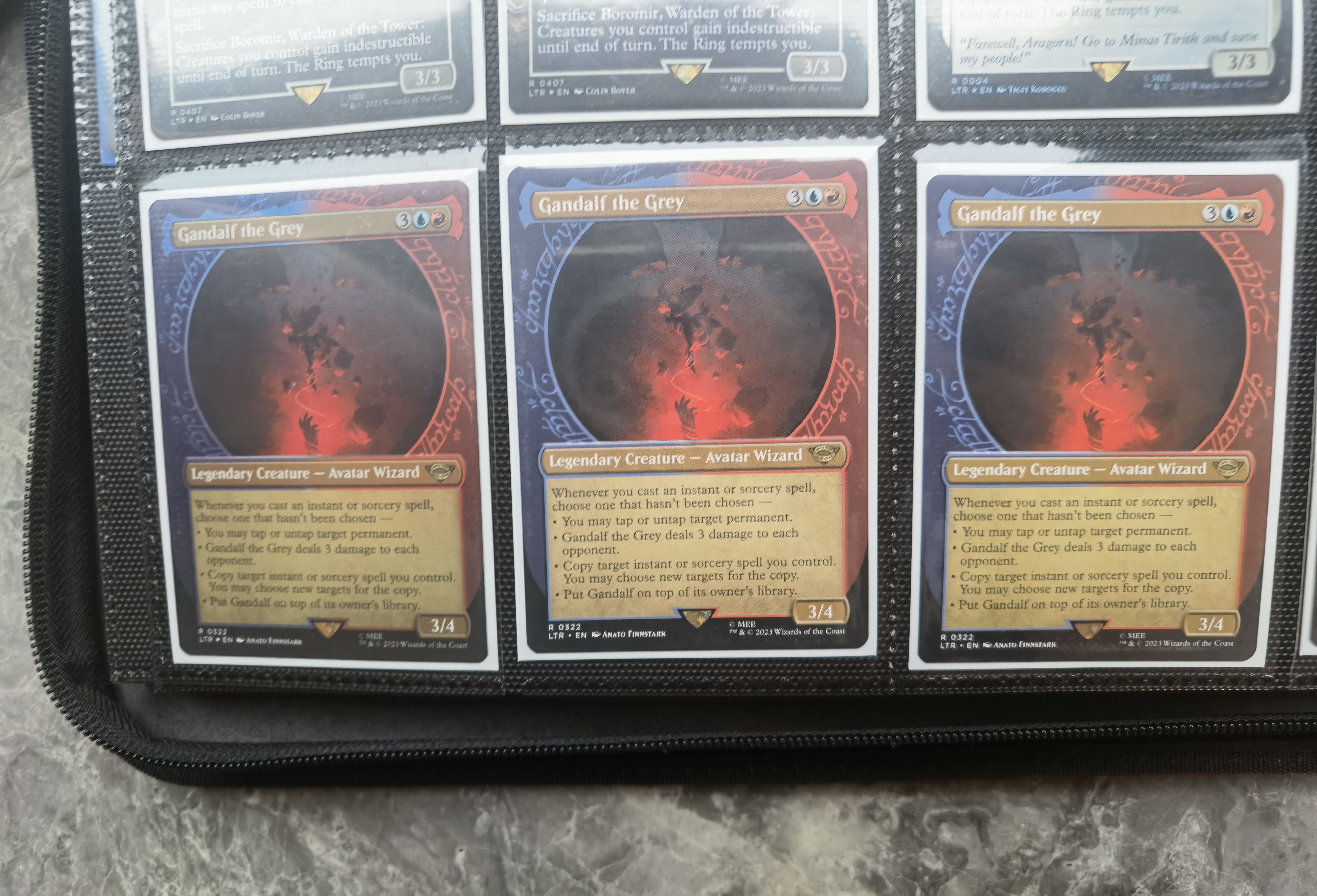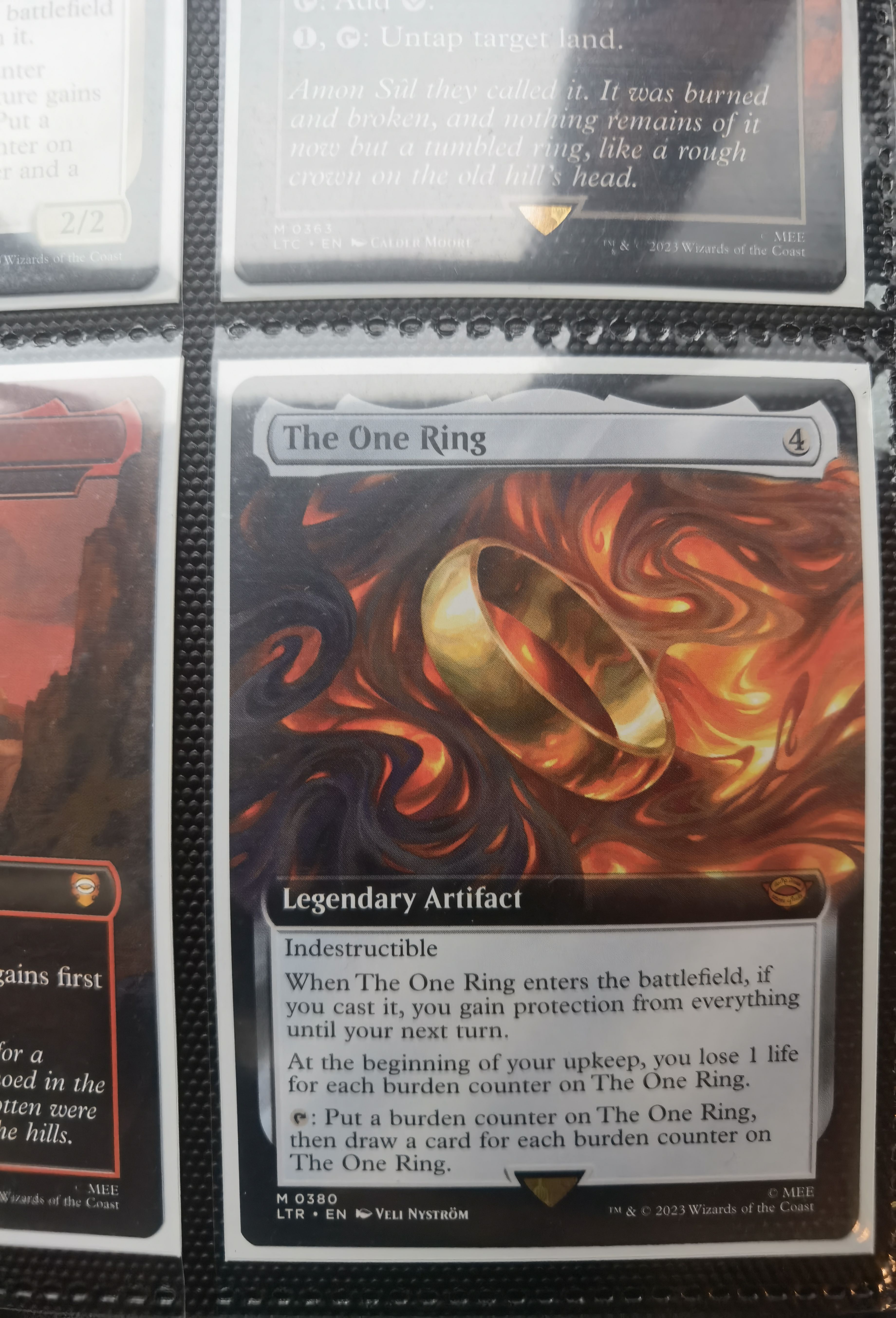这次威世智也很骚,真的就印了一张全球唯一一张的带1/1编号的“魔戒”,the one ring,the ring to rule them all。现在已经开包开疯了,这张牌二手价格估计要上1000万人民币了,甚至更高。