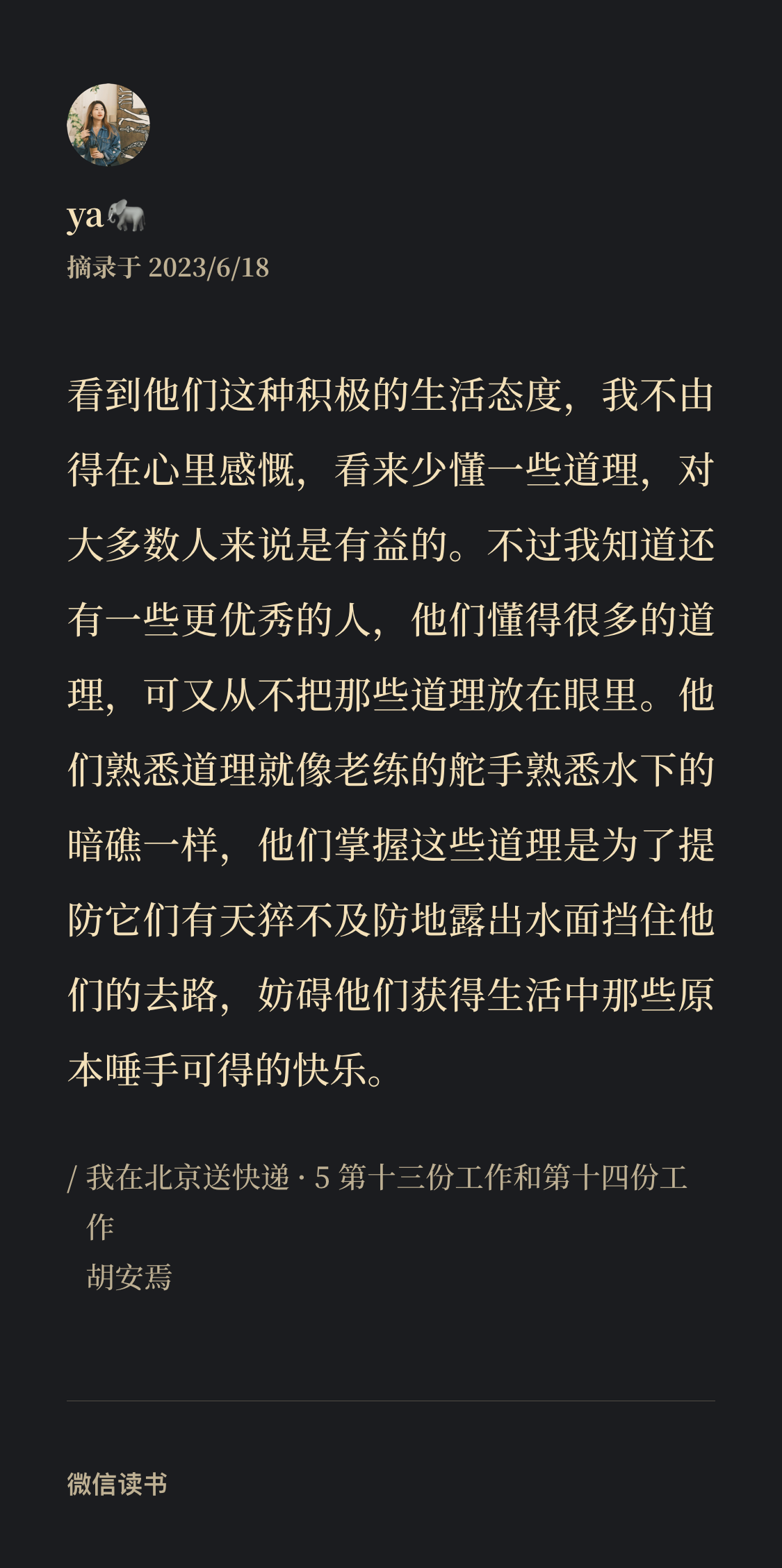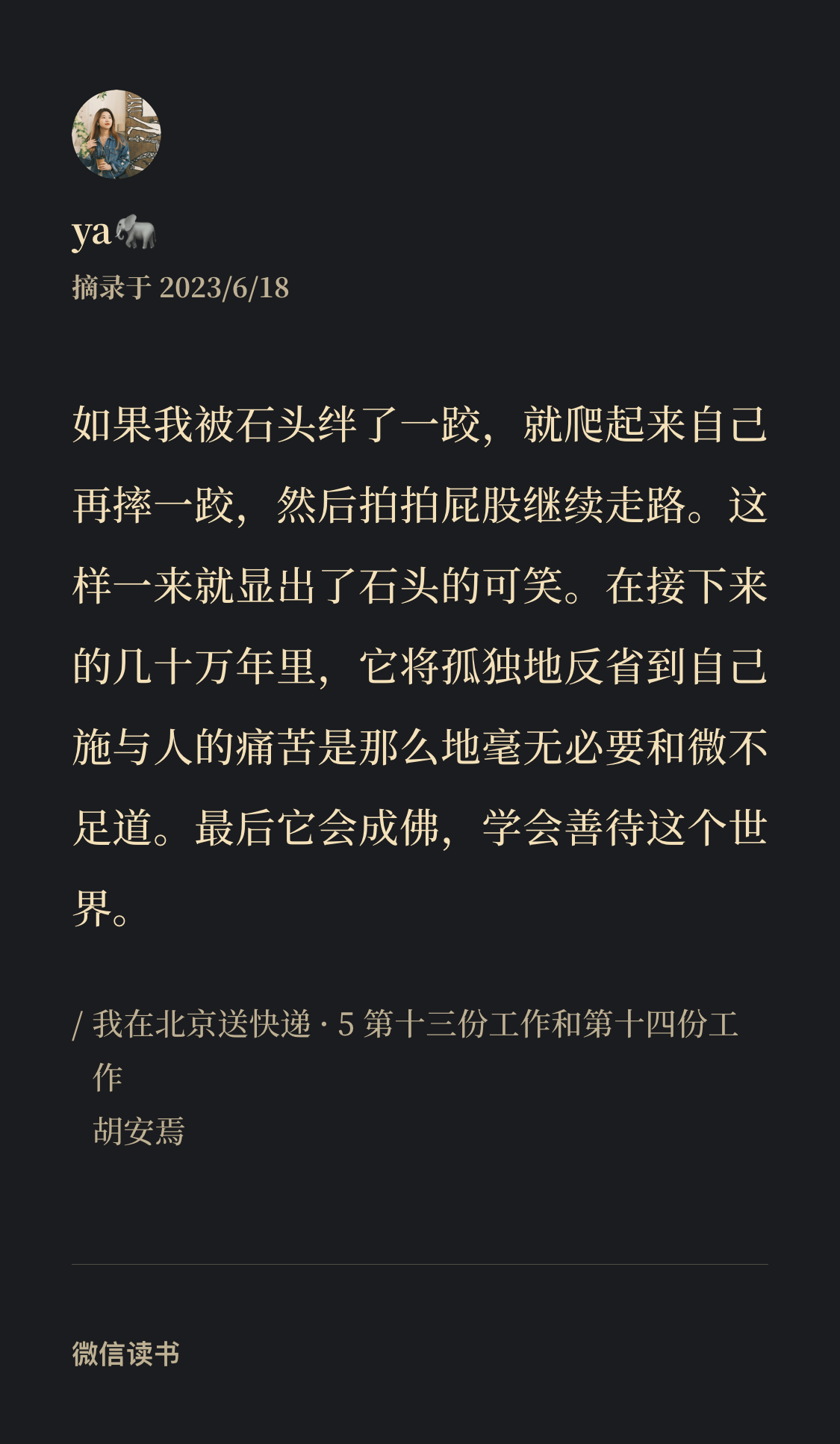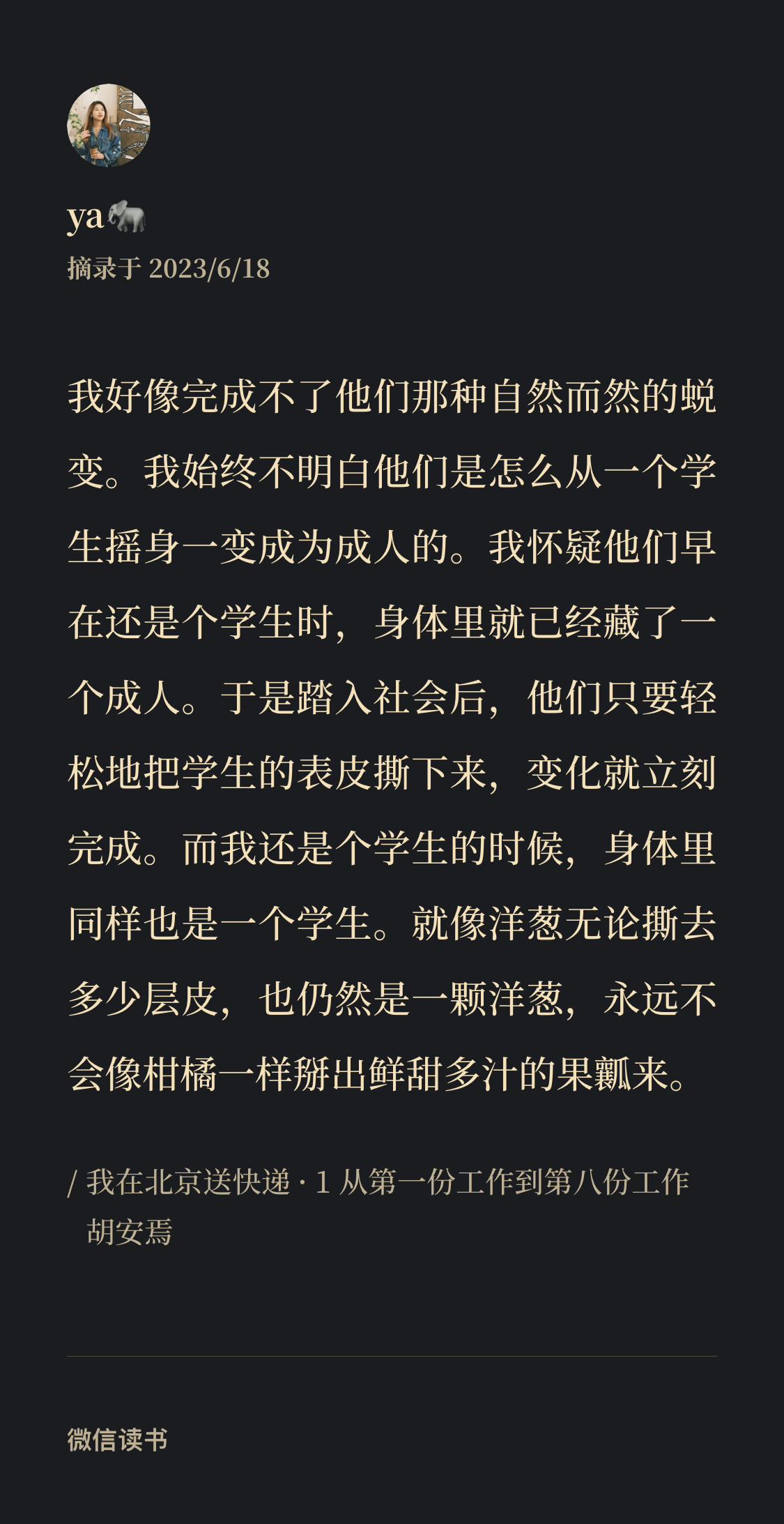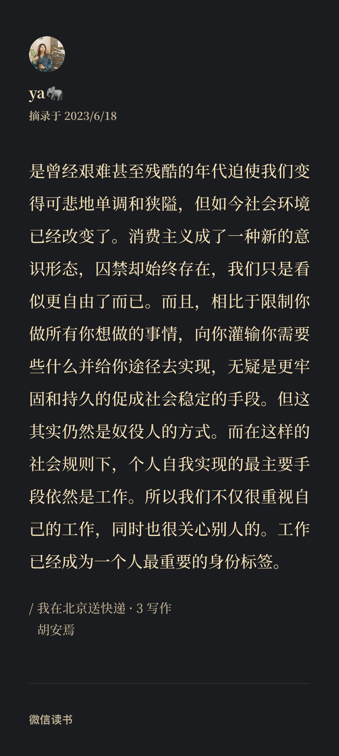 胡安焉,一个普通的快递员,一个曾经做过十几份工的小镇青年,一个思考者,一个文学爱好者,一个持续写作的生活战士。