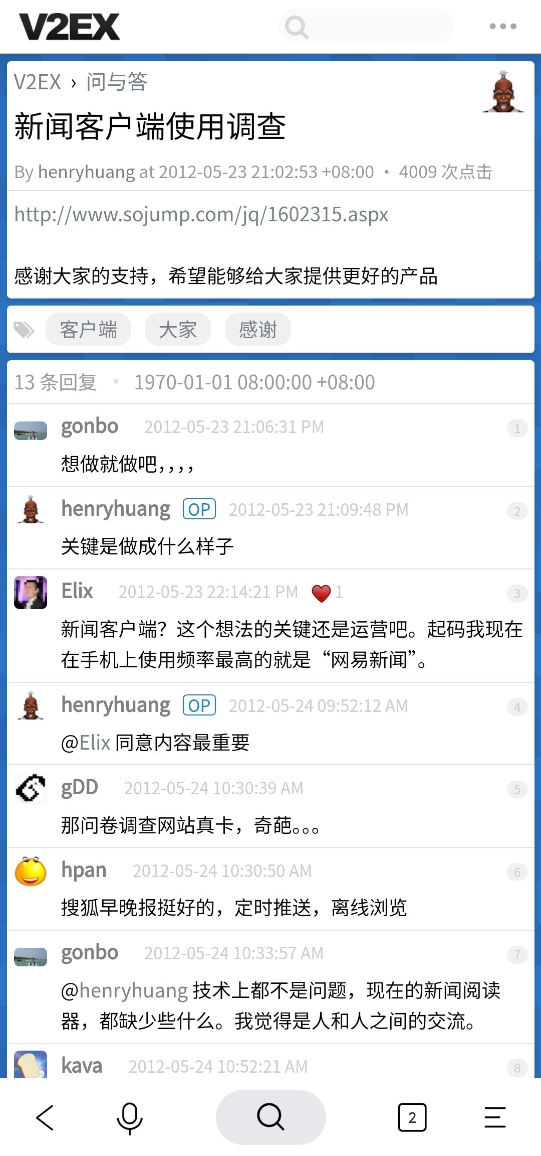 你甚至能看到 bytedance 的成立,以及今日头条立项时的新闻客户端调查问卷,以及今日头条 App 的发布。