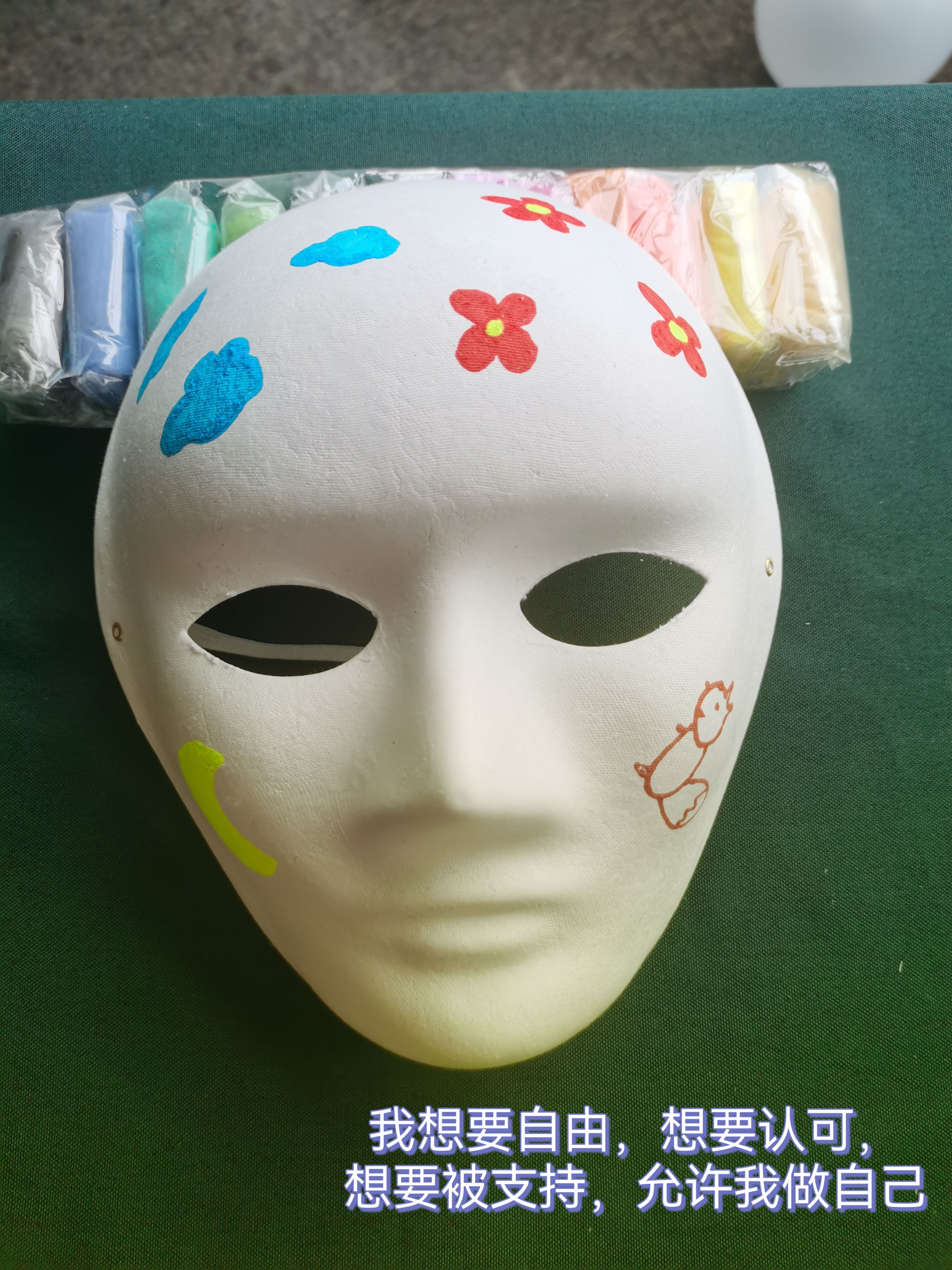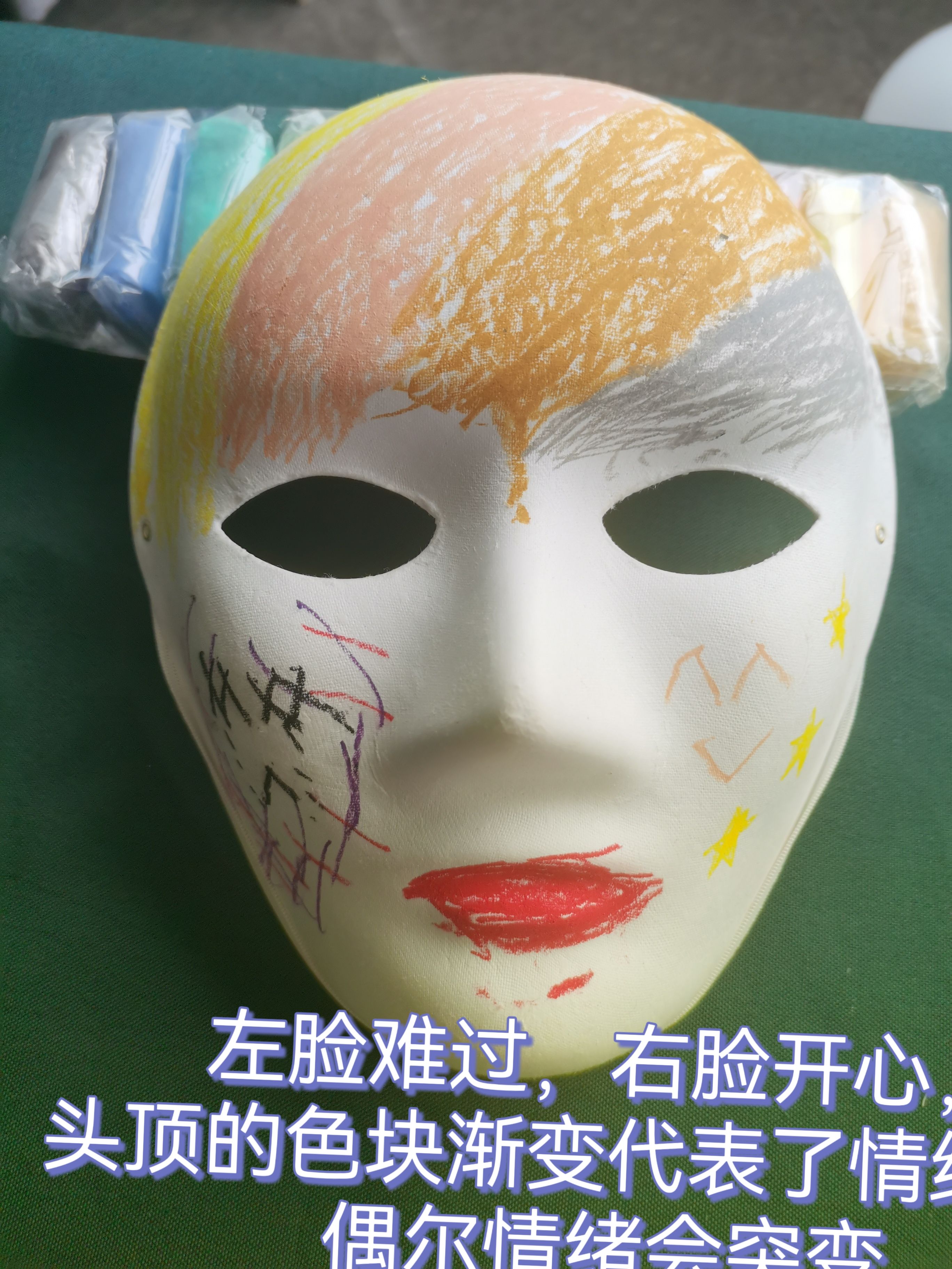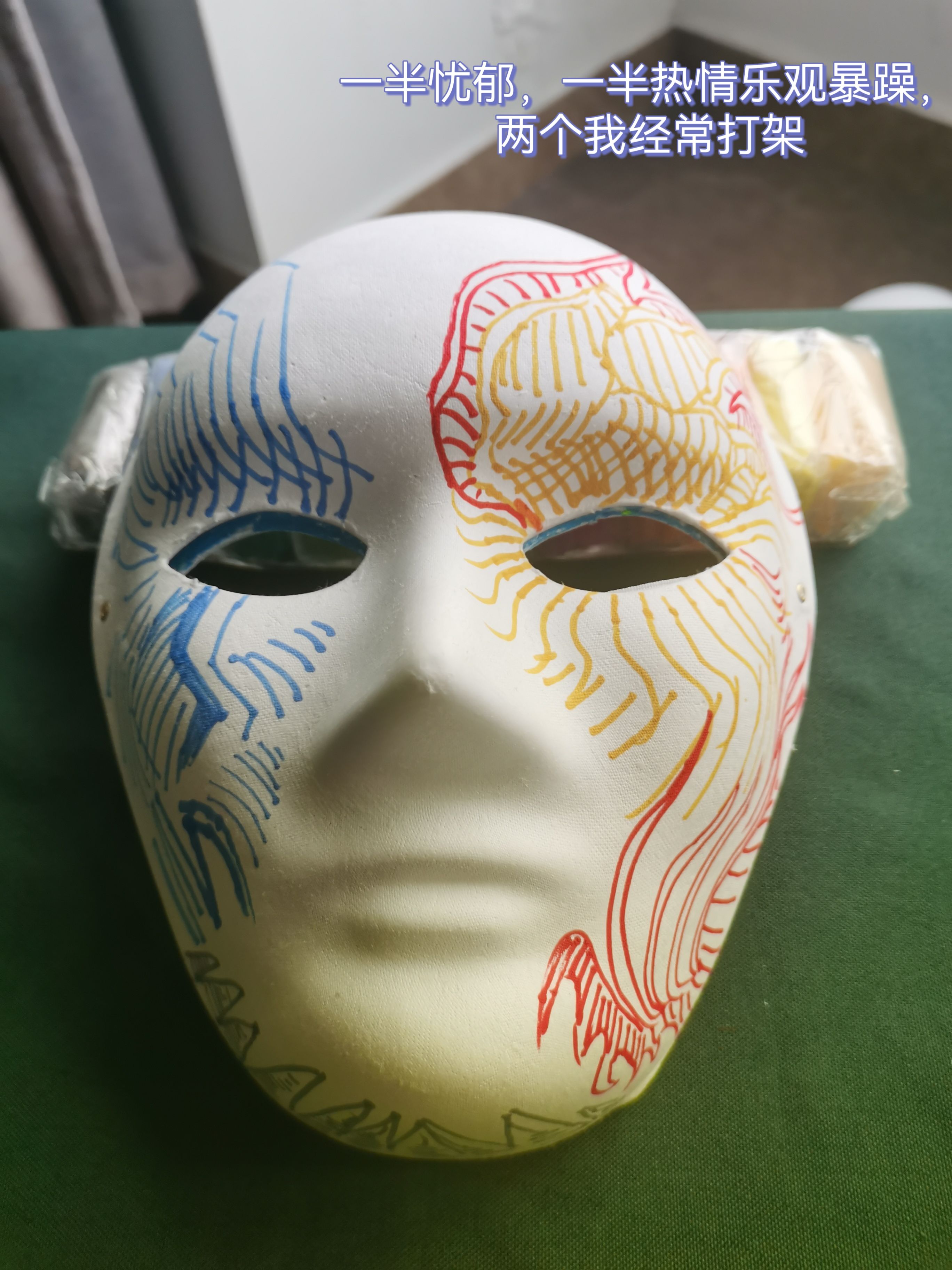 他的创作动机解读让大家很有共鸣,这时候我面临一个选择,是继续cue完原本流程把三个面具都画完,还是抓住当下的契机在场域中发起一段深度的自我剖析和对话,