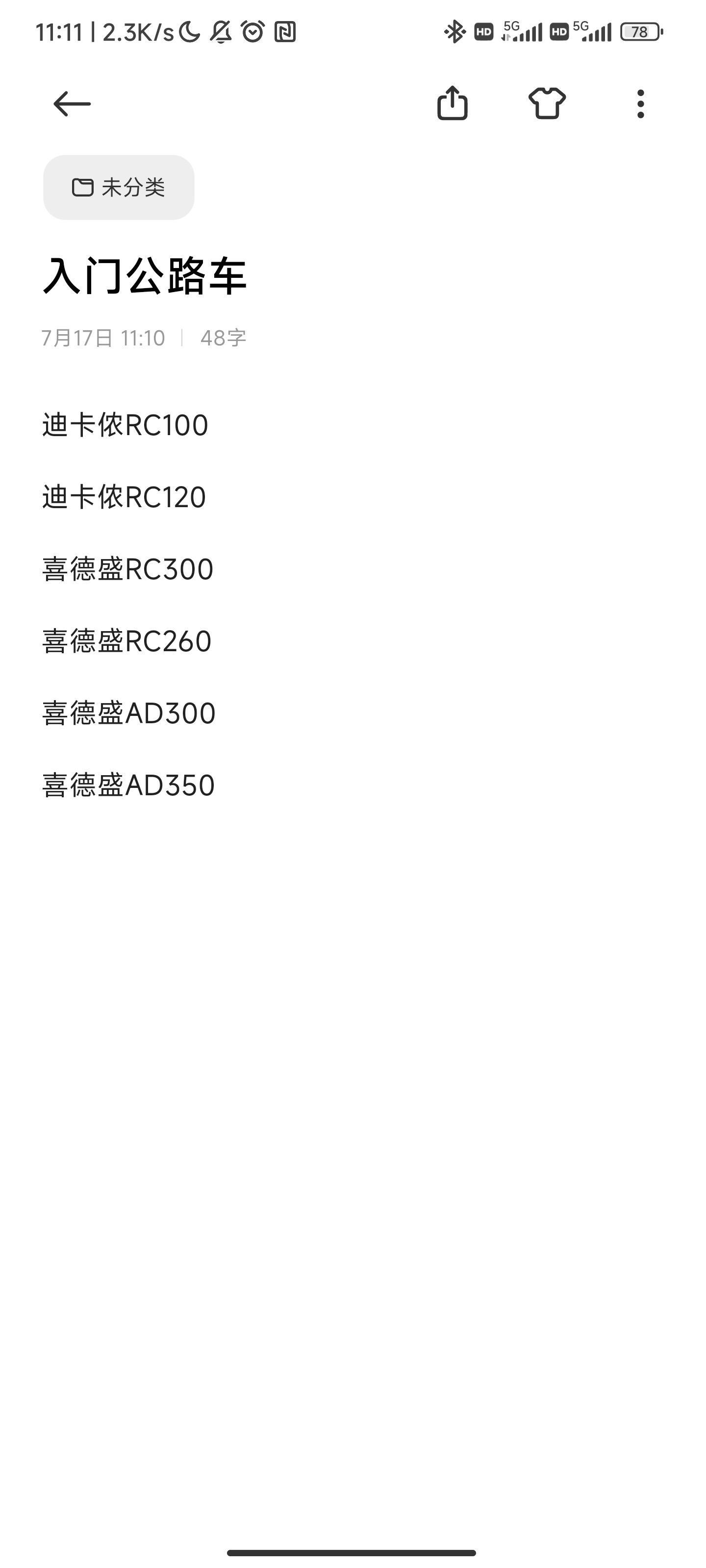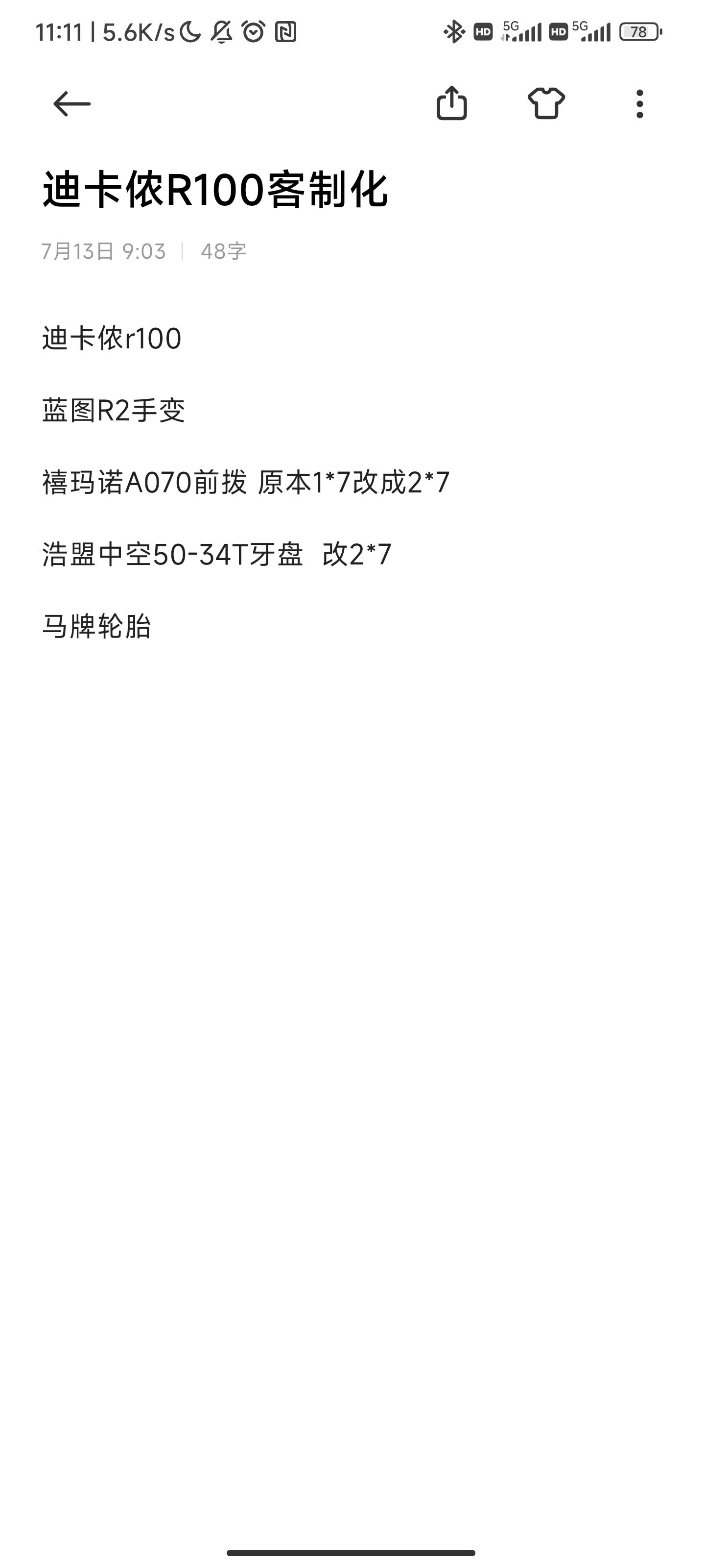 ✍🏻️我前期做了很多的功课:车身尺码、变速器、档位、车架、大小、车身几何、材质、售后、市场口碑等多方面去了解,最终敲定了图一这些车和图二的解决方案。