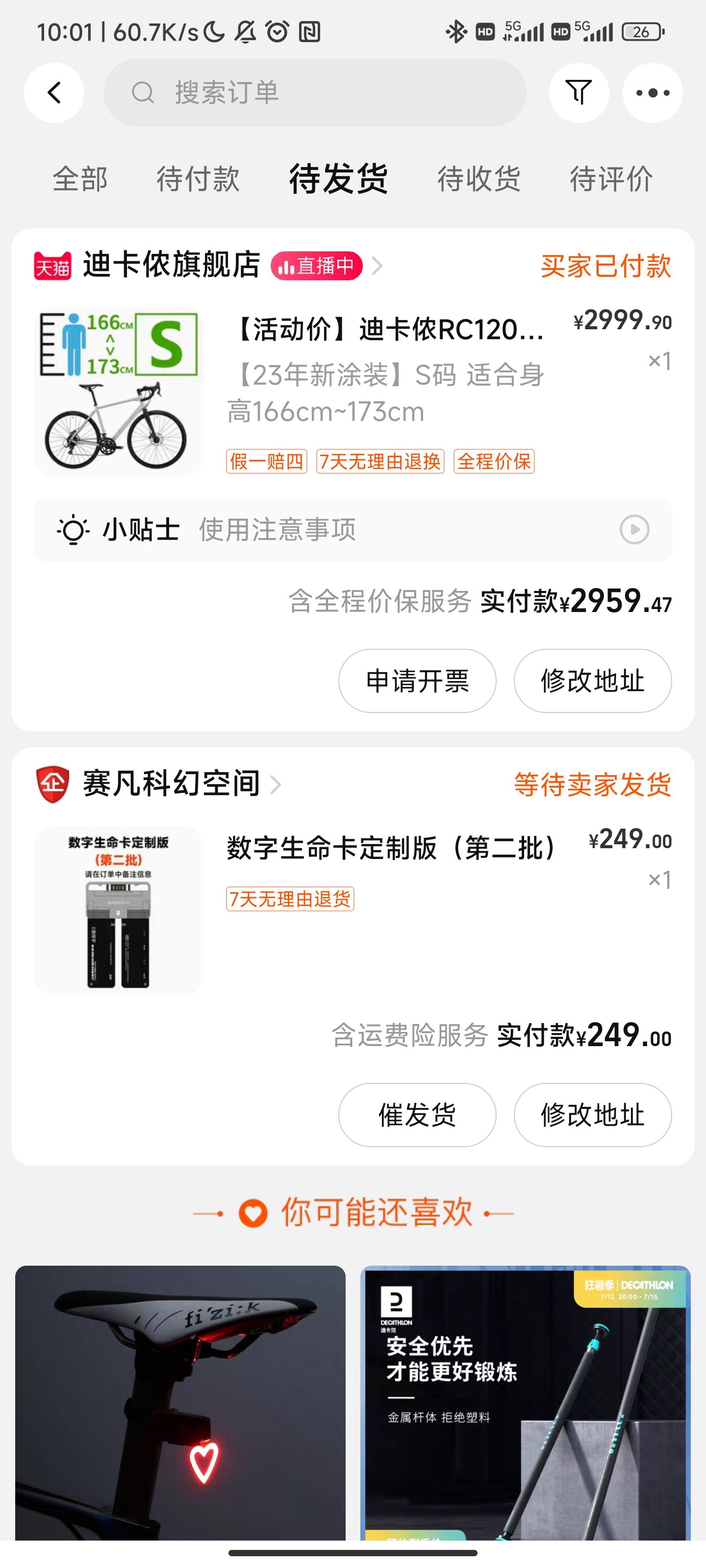 💰再说说公路车预算吧,我最开始是预算3k裸车价格,脚撑、头盔、尾灯等配件我自己买。因为只有迪卡侬可以在线买线下提货,我才选择的迪卡侬,然后我图二的改装方案跟迪卡侬RC120高度相似,所以我就直接选择了迪卡侬RC120,下了班我就去提车