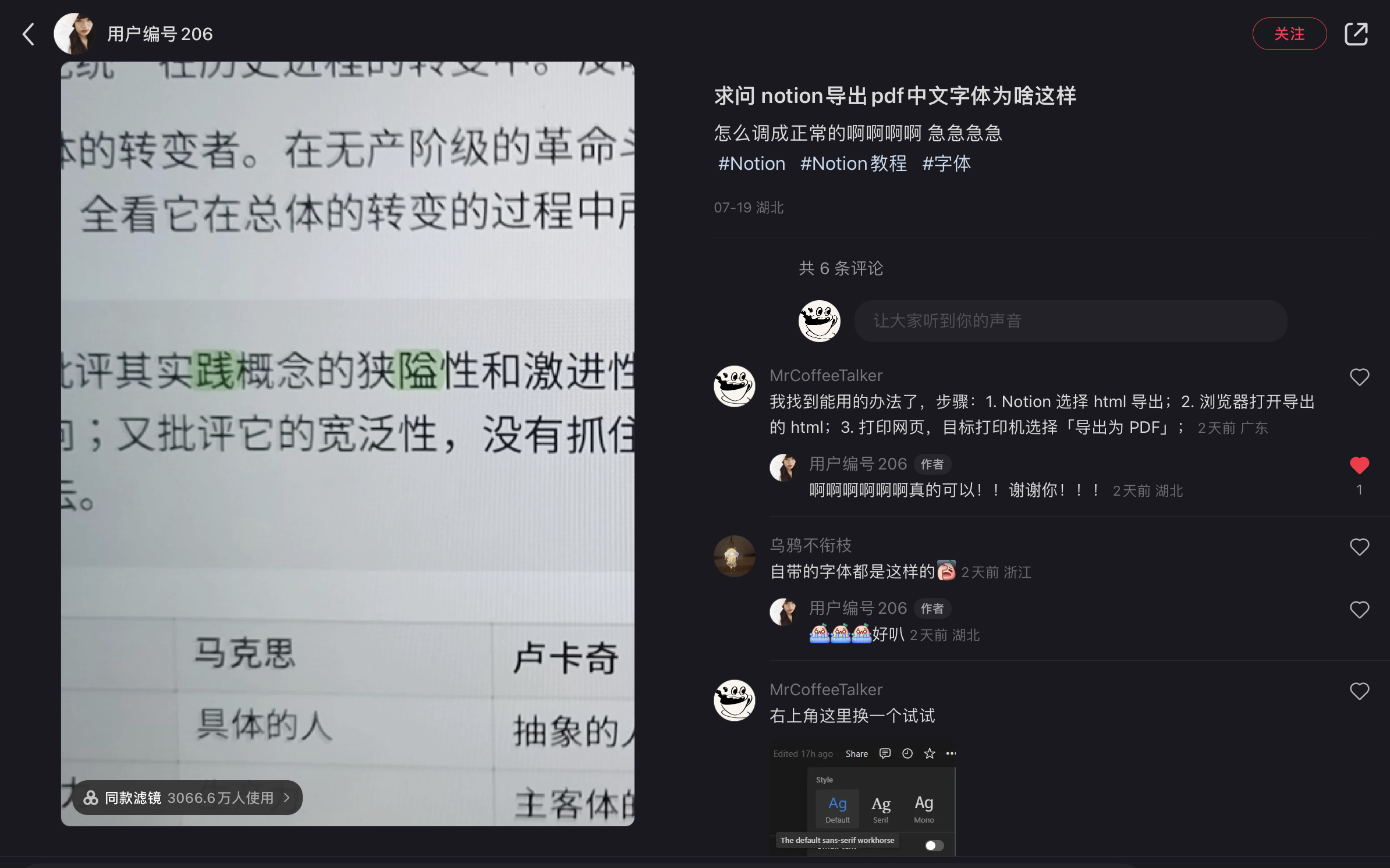 起因是刷小红书,看到一条笔记谈 Notion 导出 PDF 后,有些中文字体会变乱,样子变得和应用里看起来不同,十分影响阅读体验。