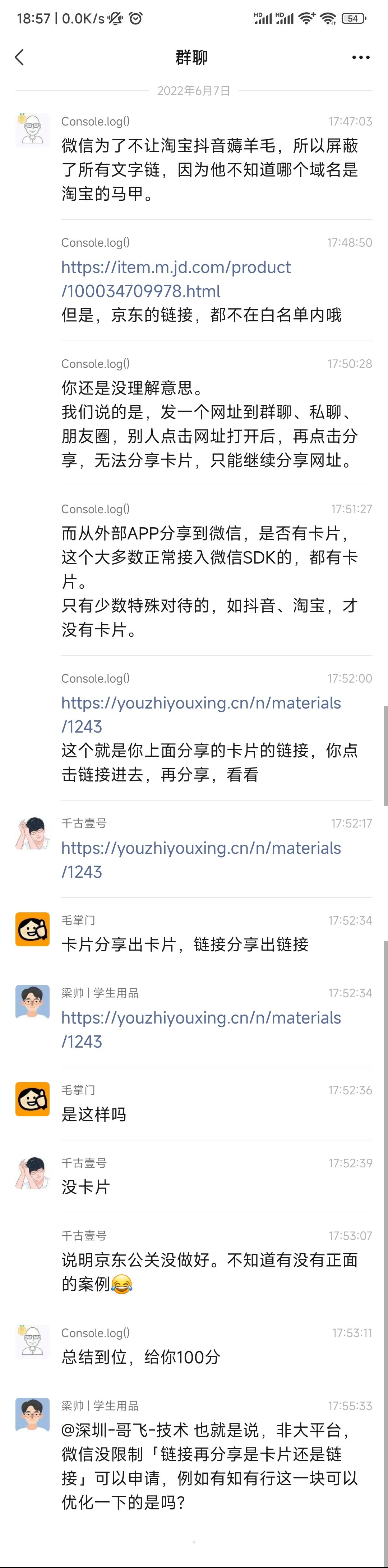 但是,微信也上线了一个新规则,如果你在微信内直接点击网址打开网页,那么分享出去的不再是卡片,而是依然还是网址。只有从卡片点开,分享出去的才是卡片。