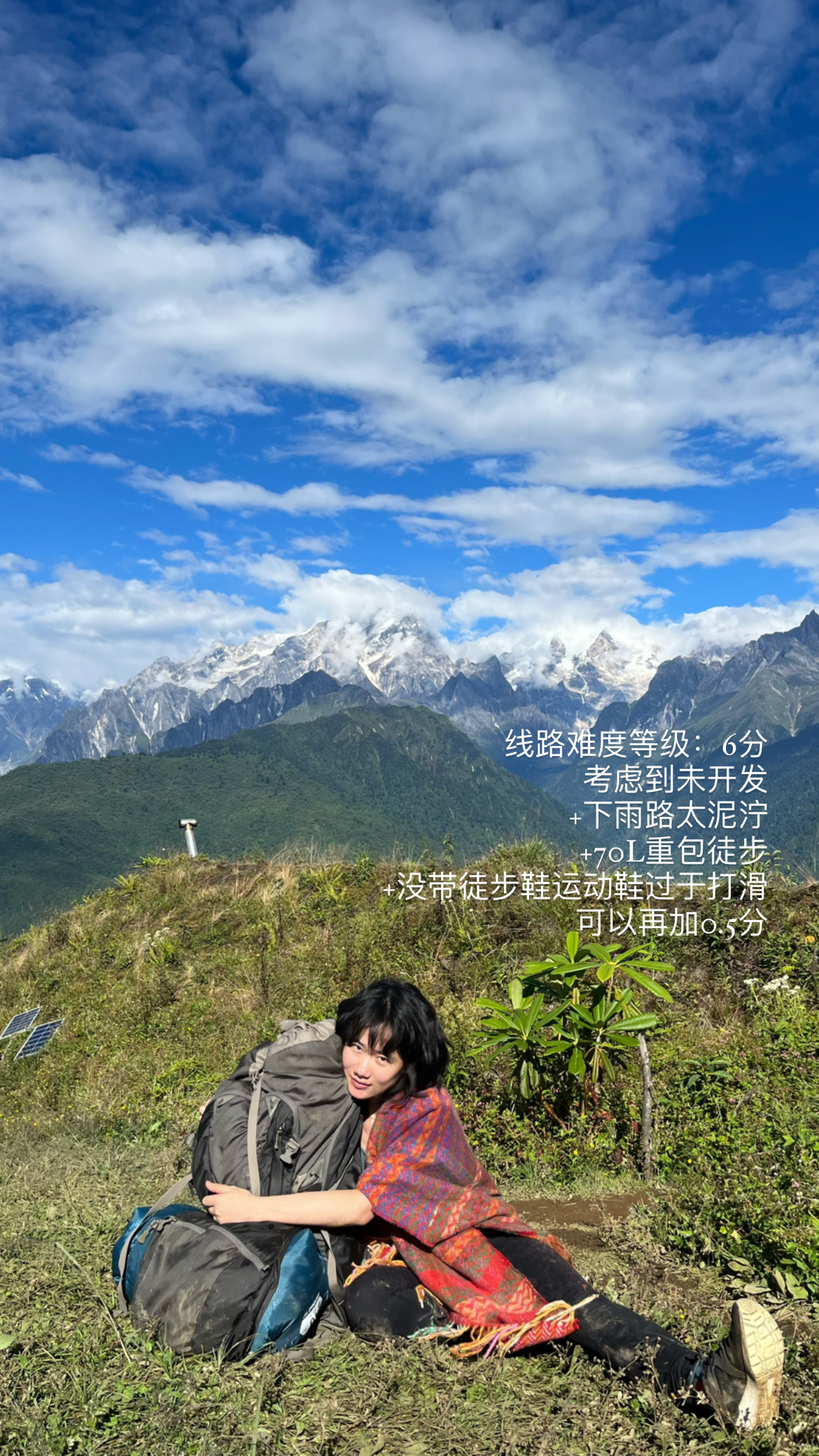 川西重装徒步,难度一下拉到6.5分。不过夜晚的天仙座流星雨也看到了,黎明的日照贡嘎山也看到了,这趟还算值得。