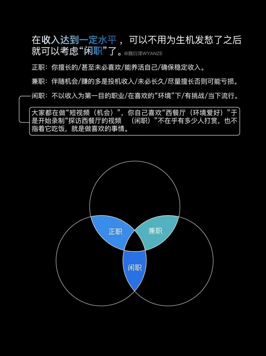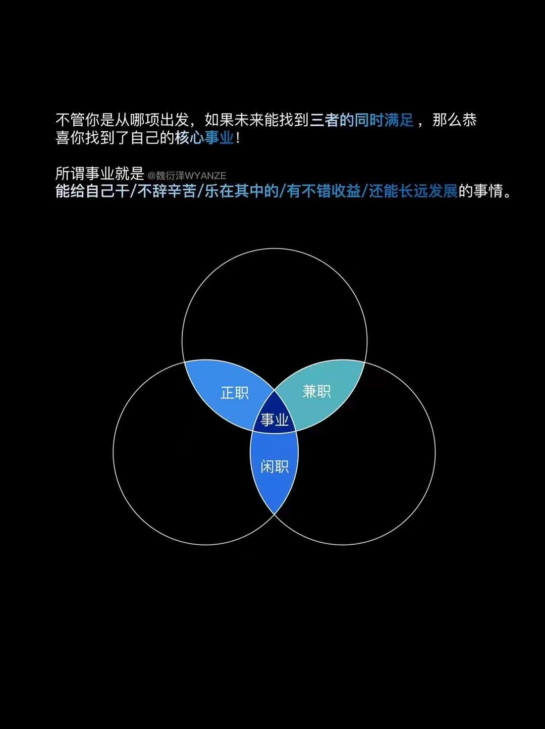 符合能给自己干/不辞辛苦/乐在其中/有不错收益/还能长期发展的事情。