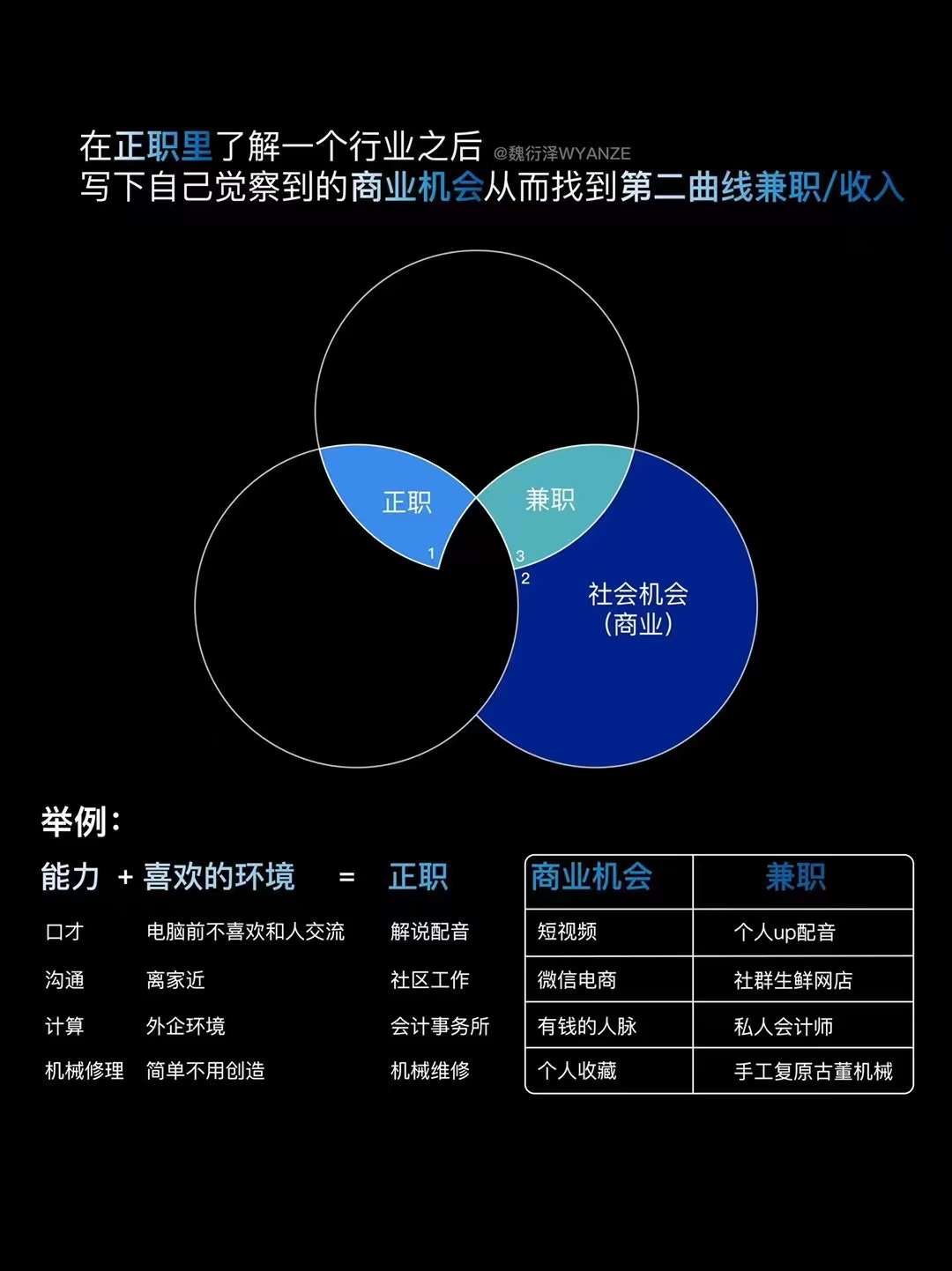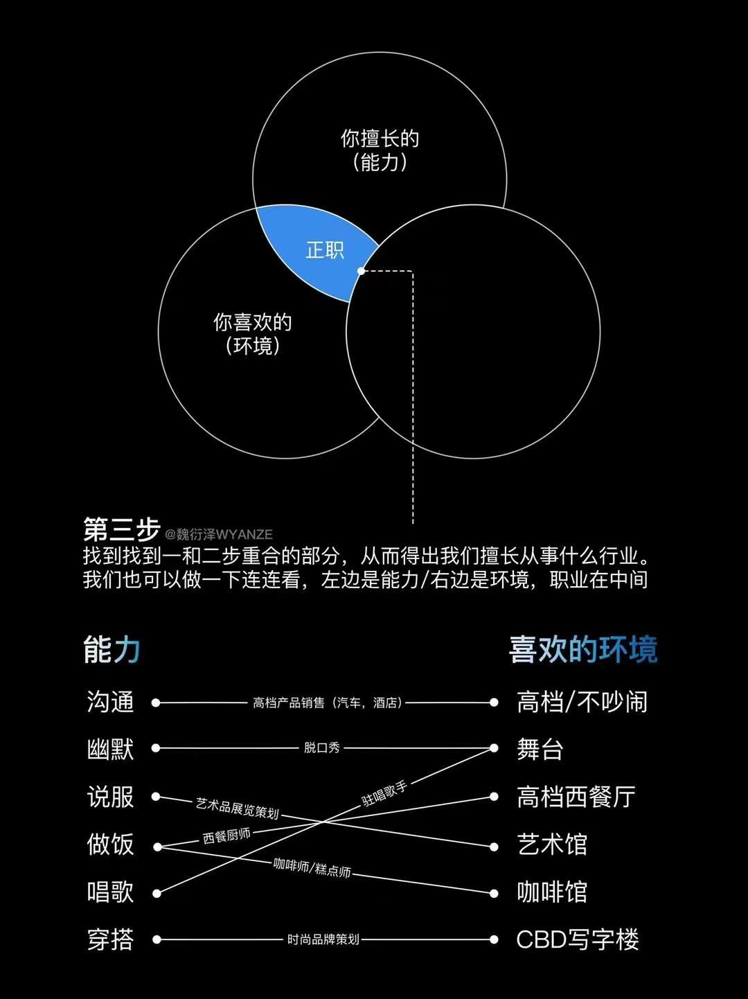 第三步:交叉得出我喜欢的职业,是创作者和咨询顾问;