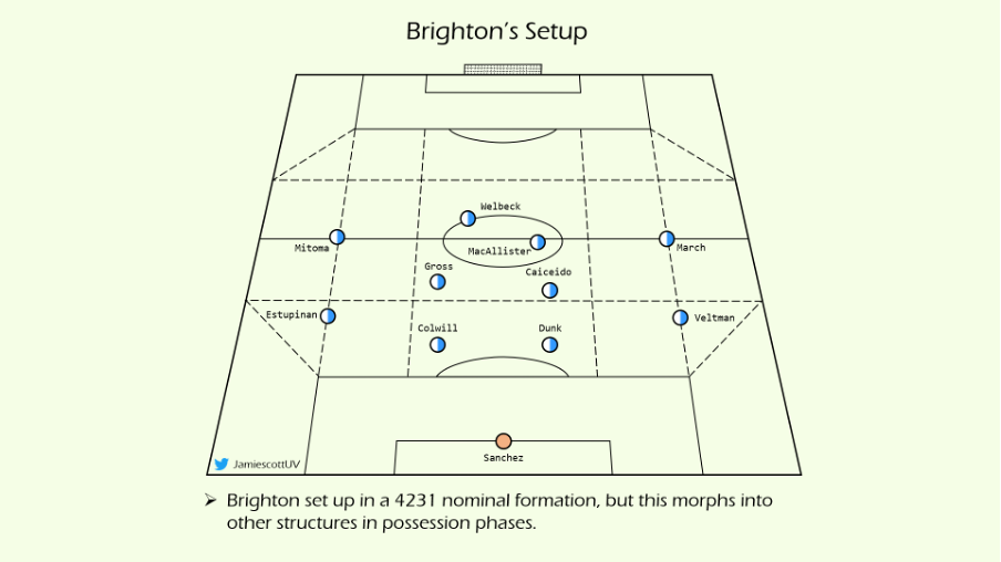 德泽尔比治下的布莱顿是一支非常独特的球队,虽然波特已经创造了一种相当强大并且影响深远的体系。但德泽尔比居然又加入了自己的东西。