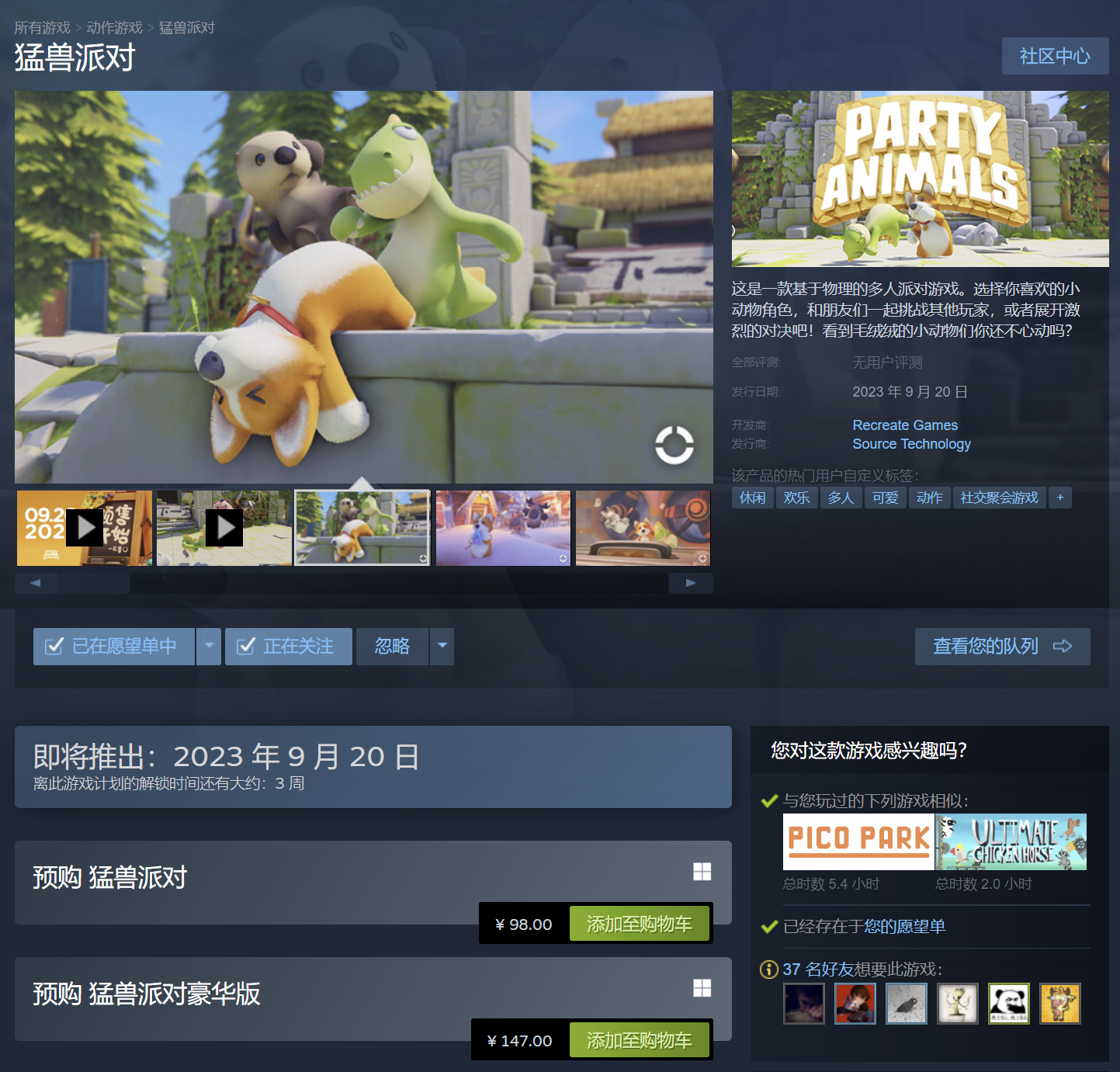 终于,《猛兽派对(原”动物派对“)》在Steam开启预售,98起,你还会冲吗?