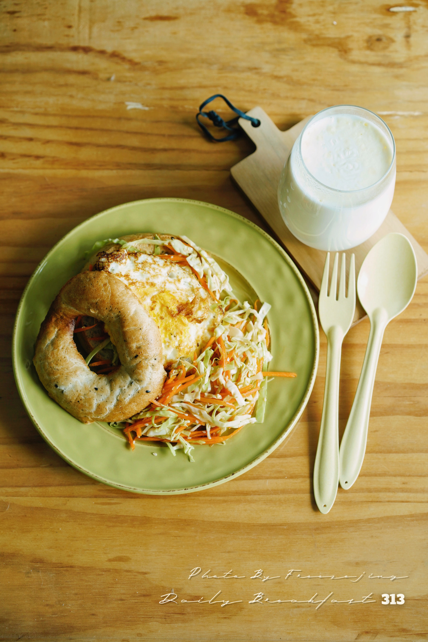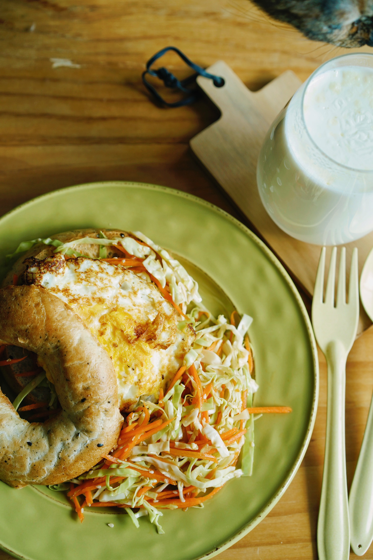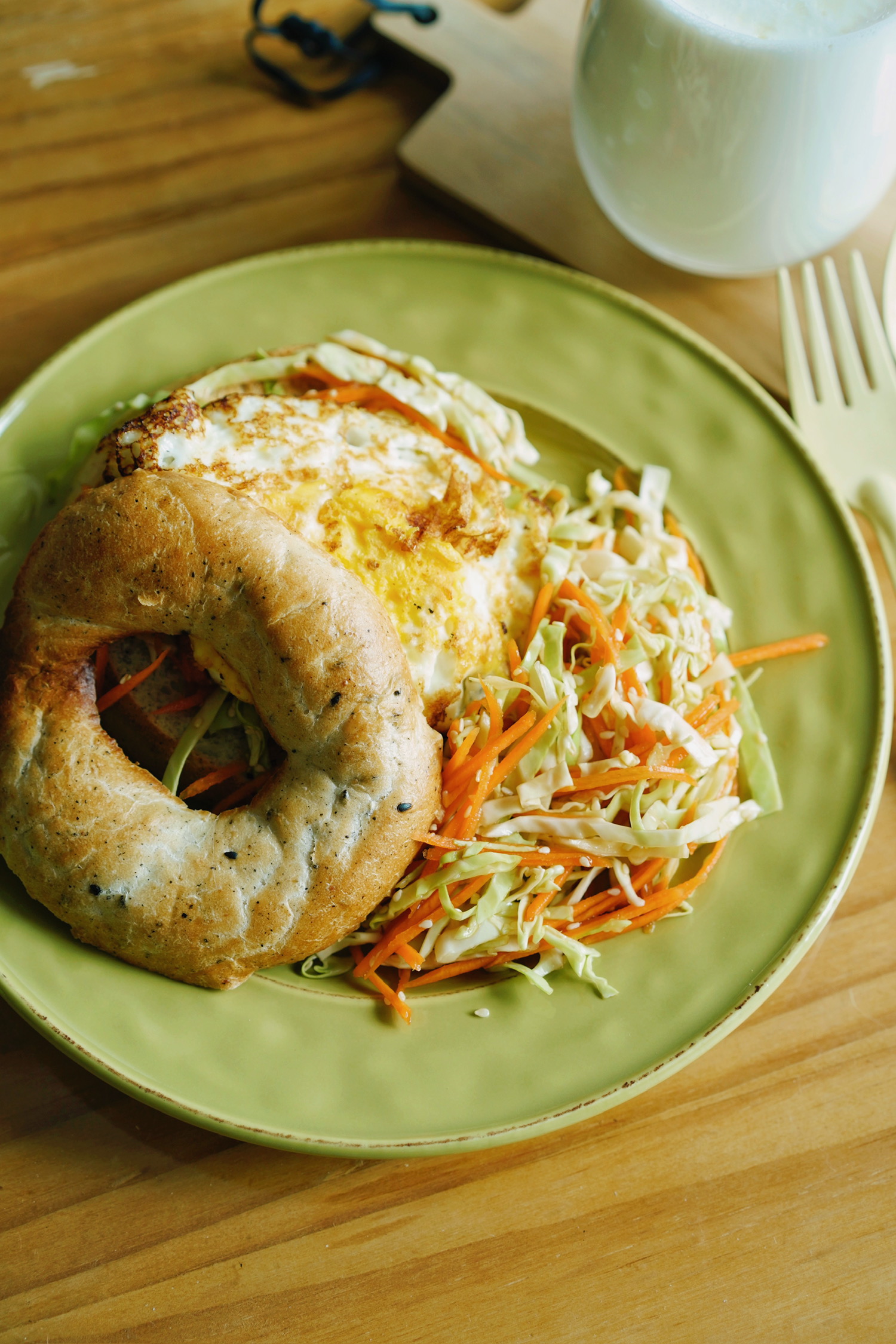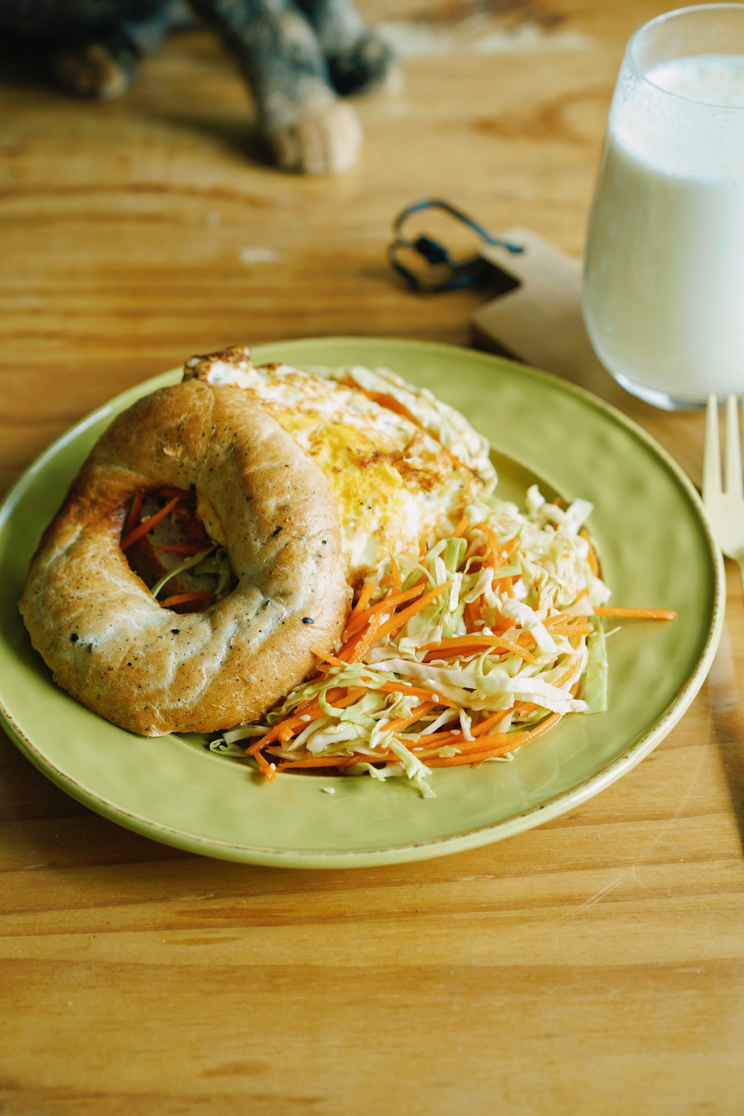 贝果煎蛋三明治&沙拉 | 牛奶