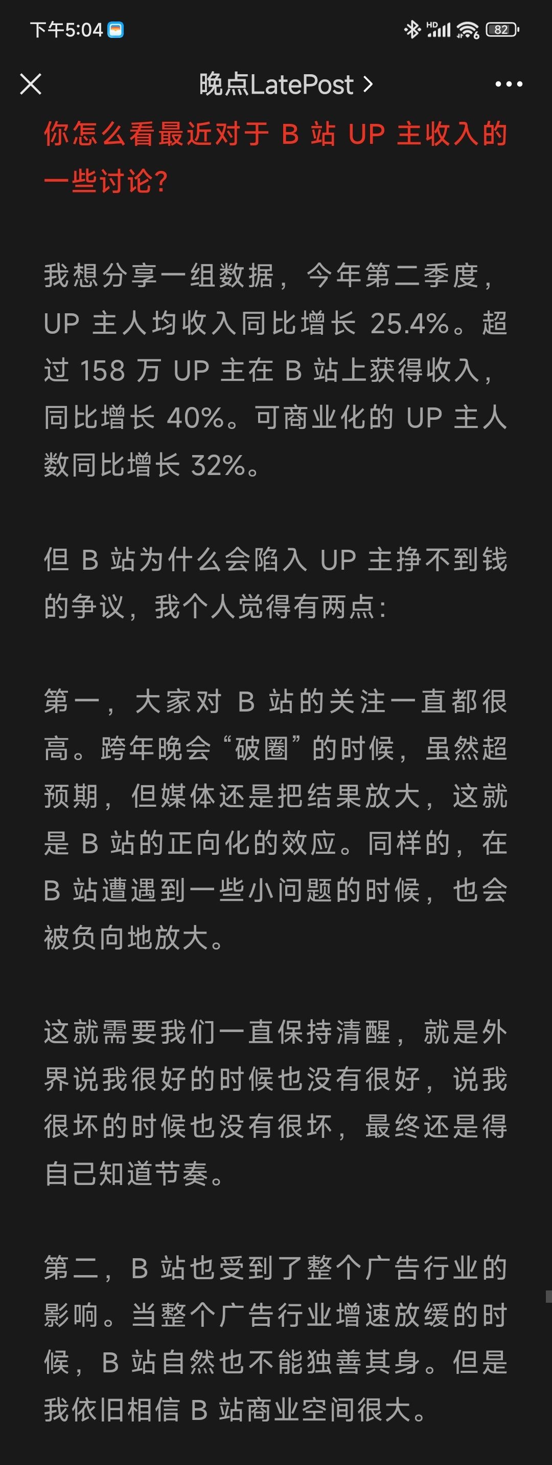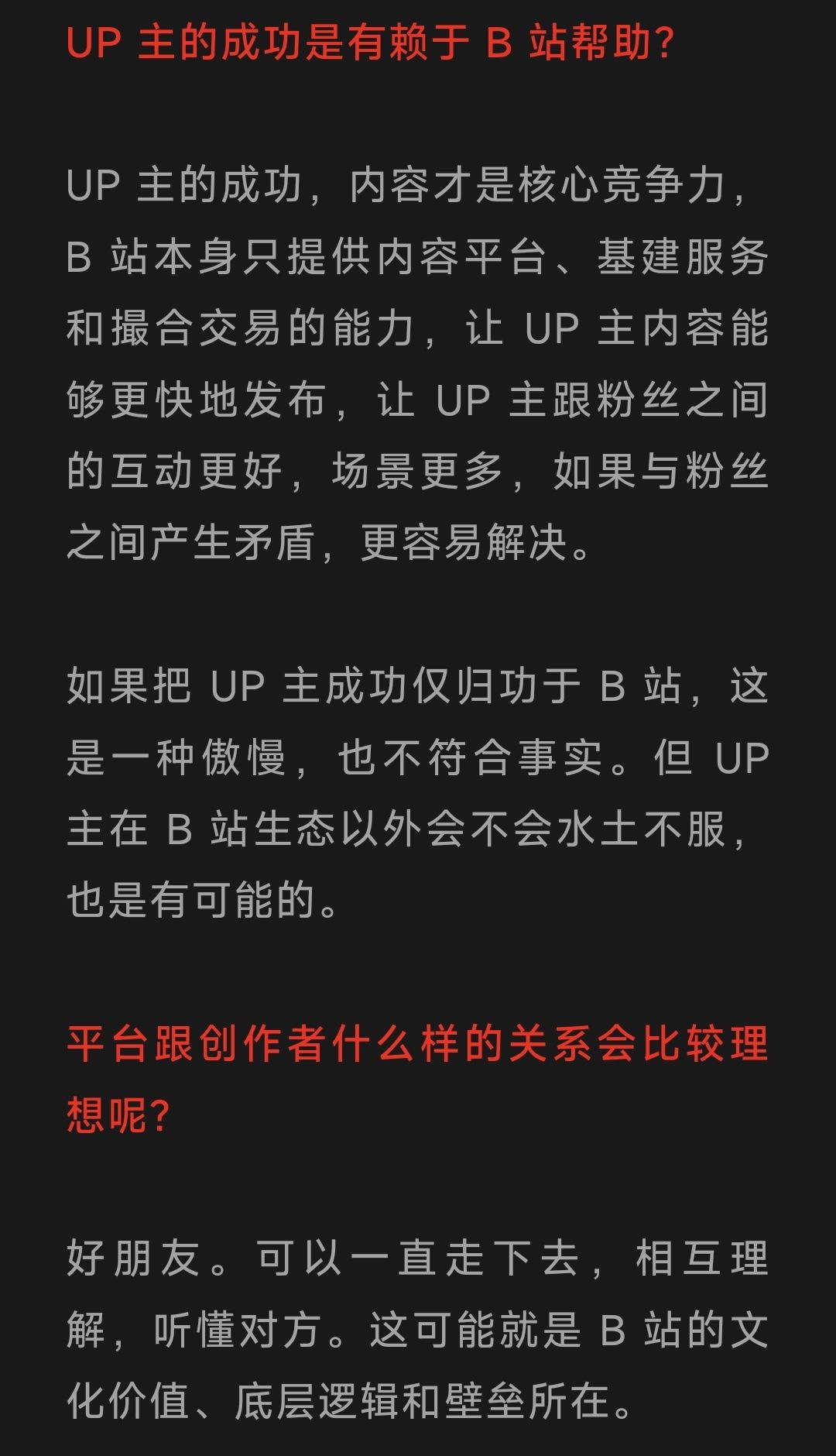 刚看了晚点采访B站 COO李旎的文章,对提到的创作者和平台关系深有感触。