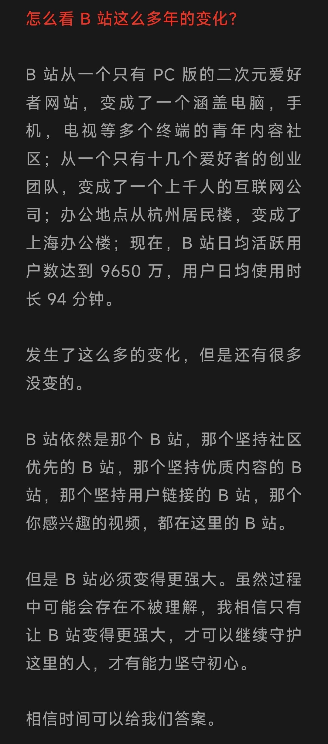 只要能牢牢地抓住up主,我相信B站未来会是中文互联网无可替代的内容平台。