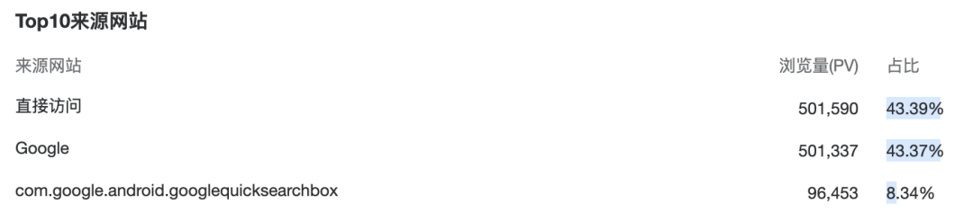看图三,其中50%流量来自于谷歌搜索,43%来自于直接访问。
