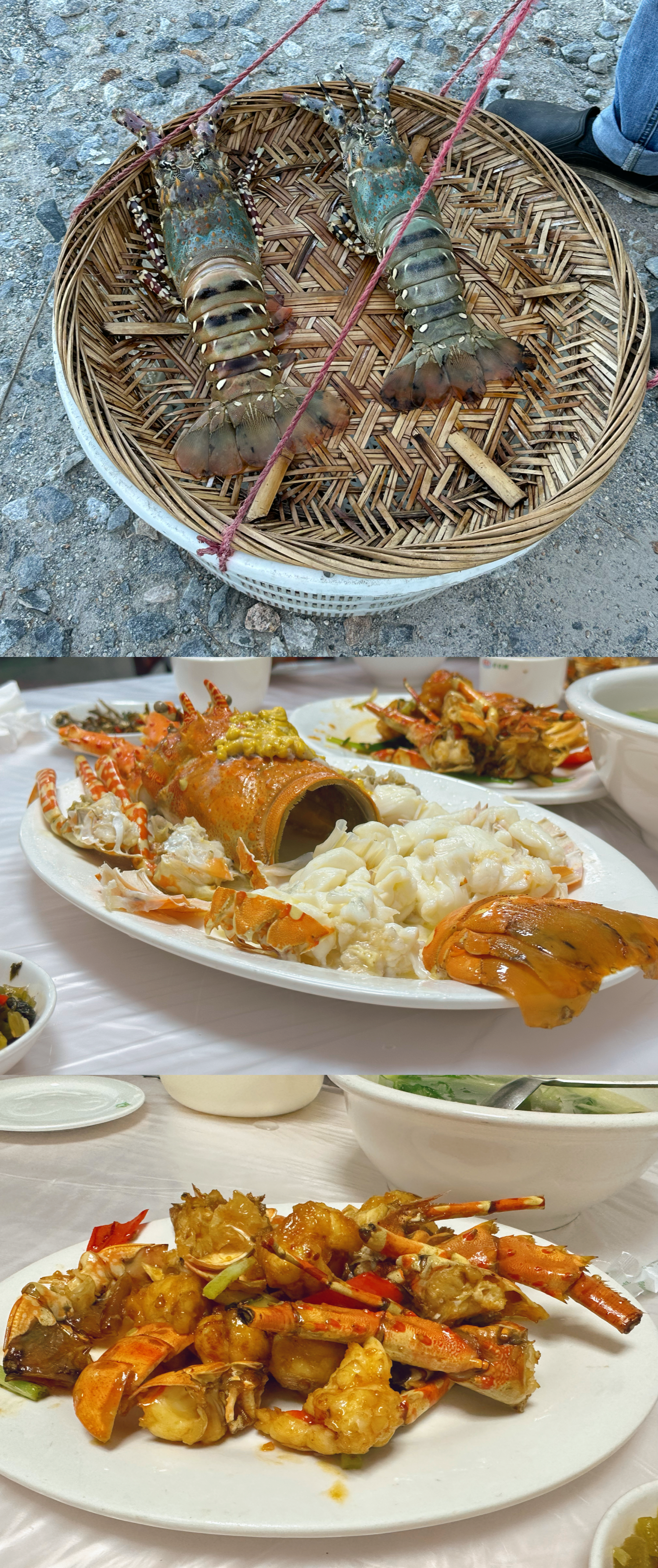 在海边跟渔民伯伯买了两只超大的活龙虾,晚餐时让餐厅烹饪,好鲜美好好吃😋