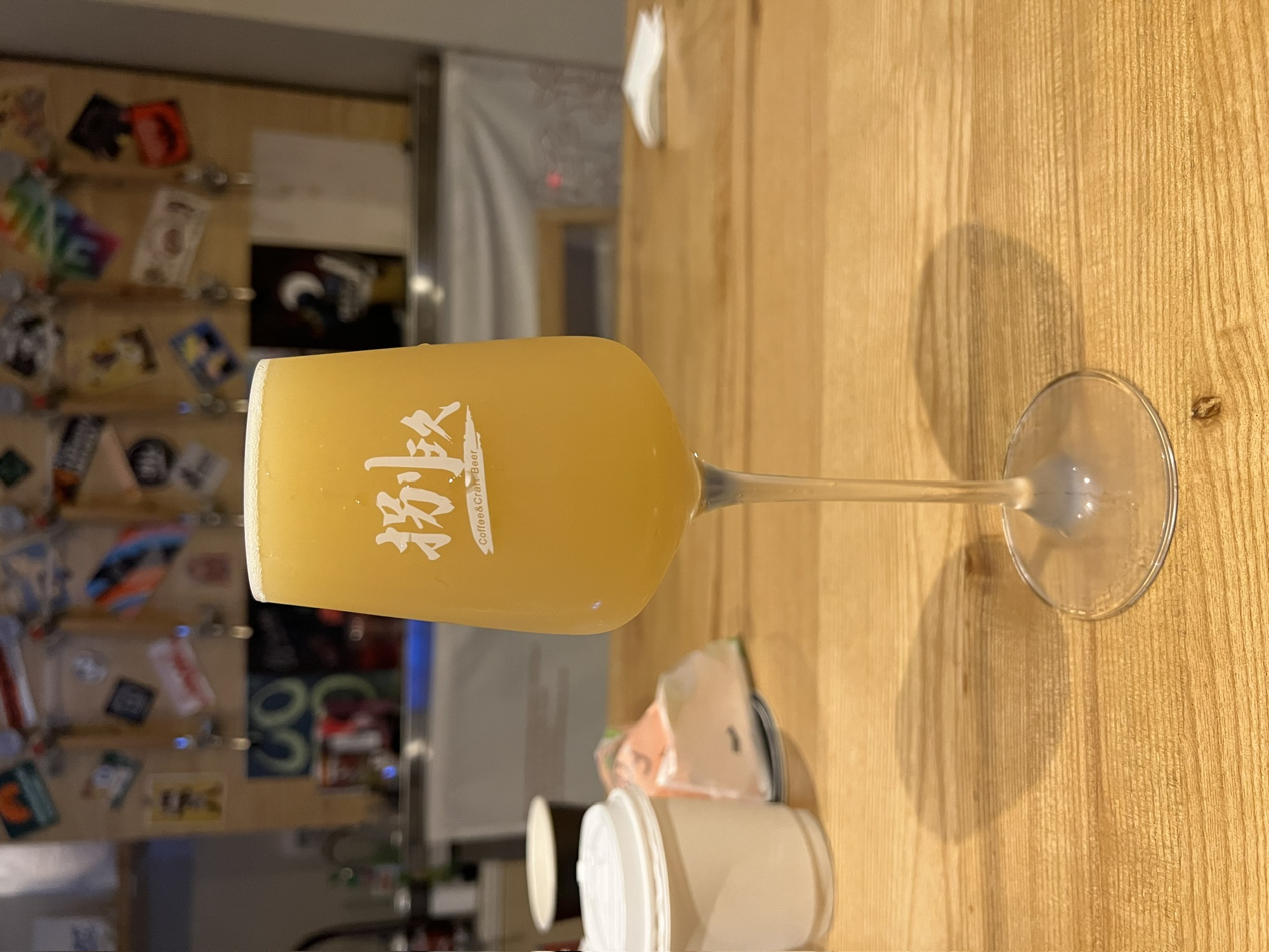 一进店就能感受到主理人对精酿毫无保留的热爱:整个店的房梁上目之所及都是各种精酿罐子,据主理人说平时打工的钱都用来买罐子喝了。