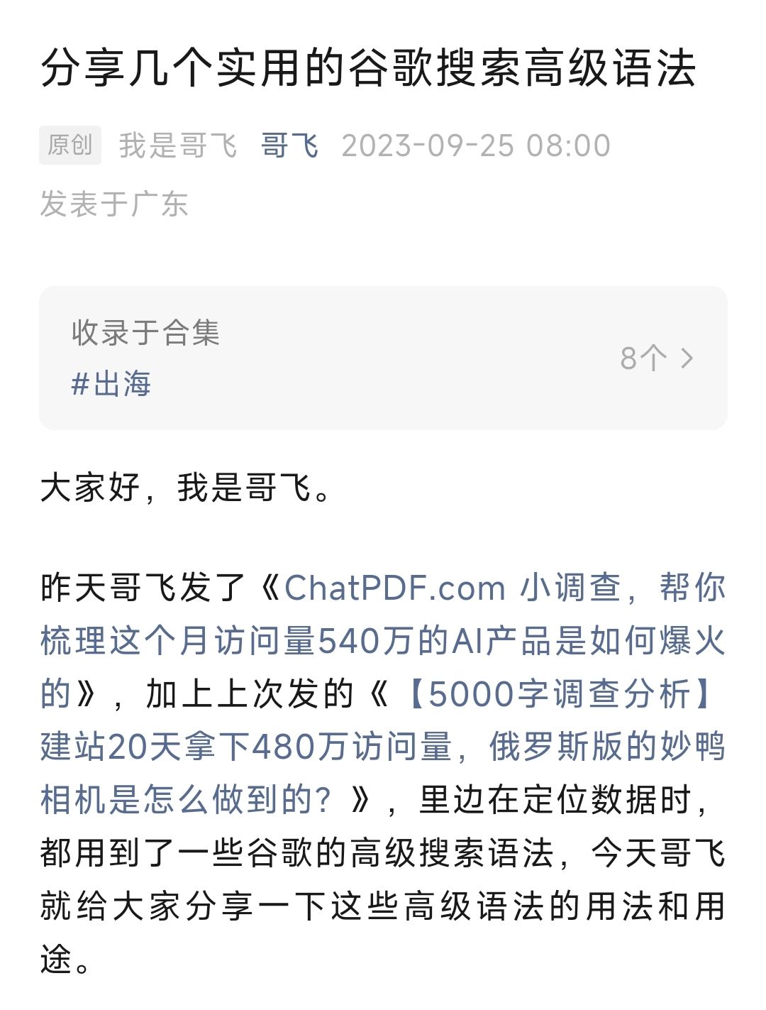 给大家分享一些谷歌搜索高级语法