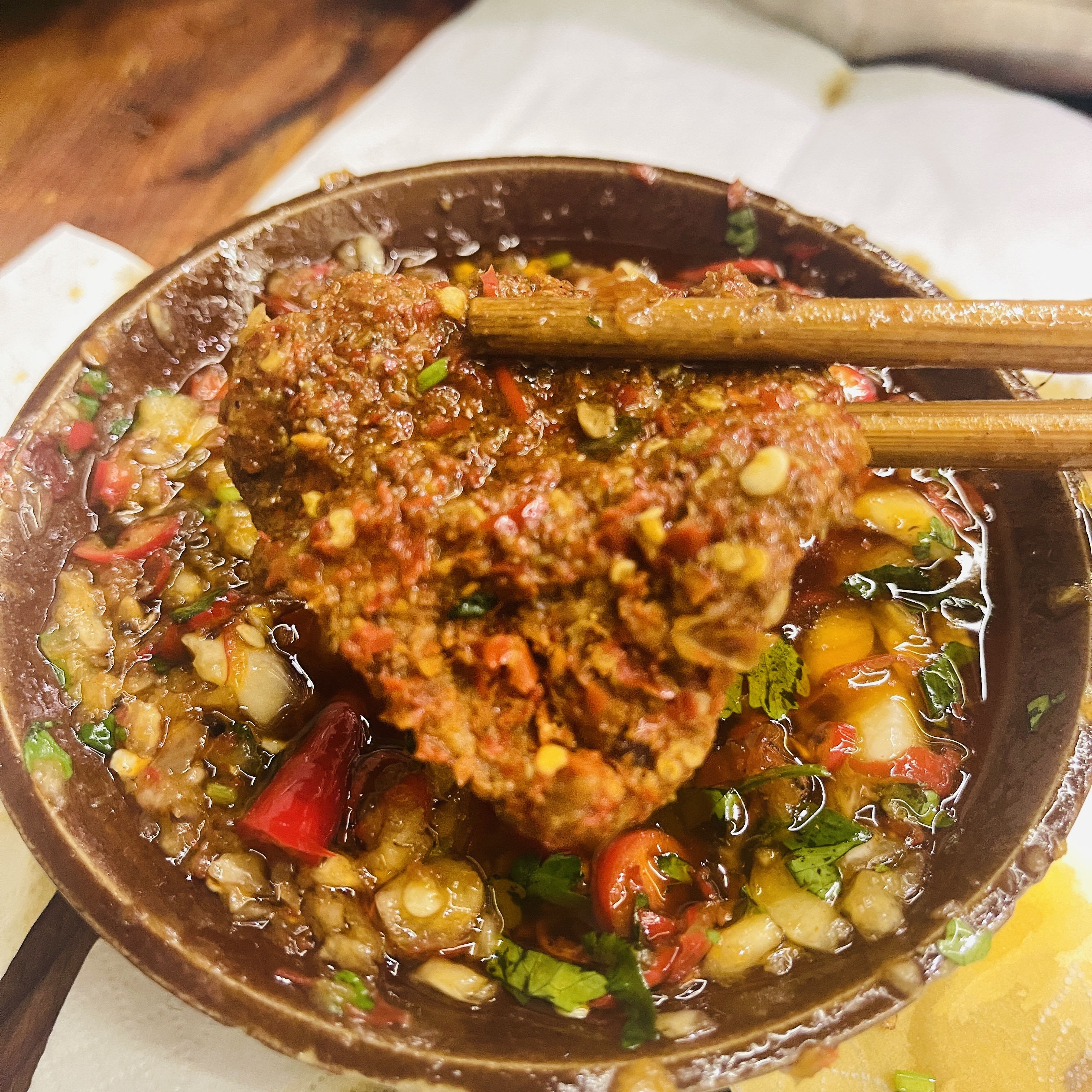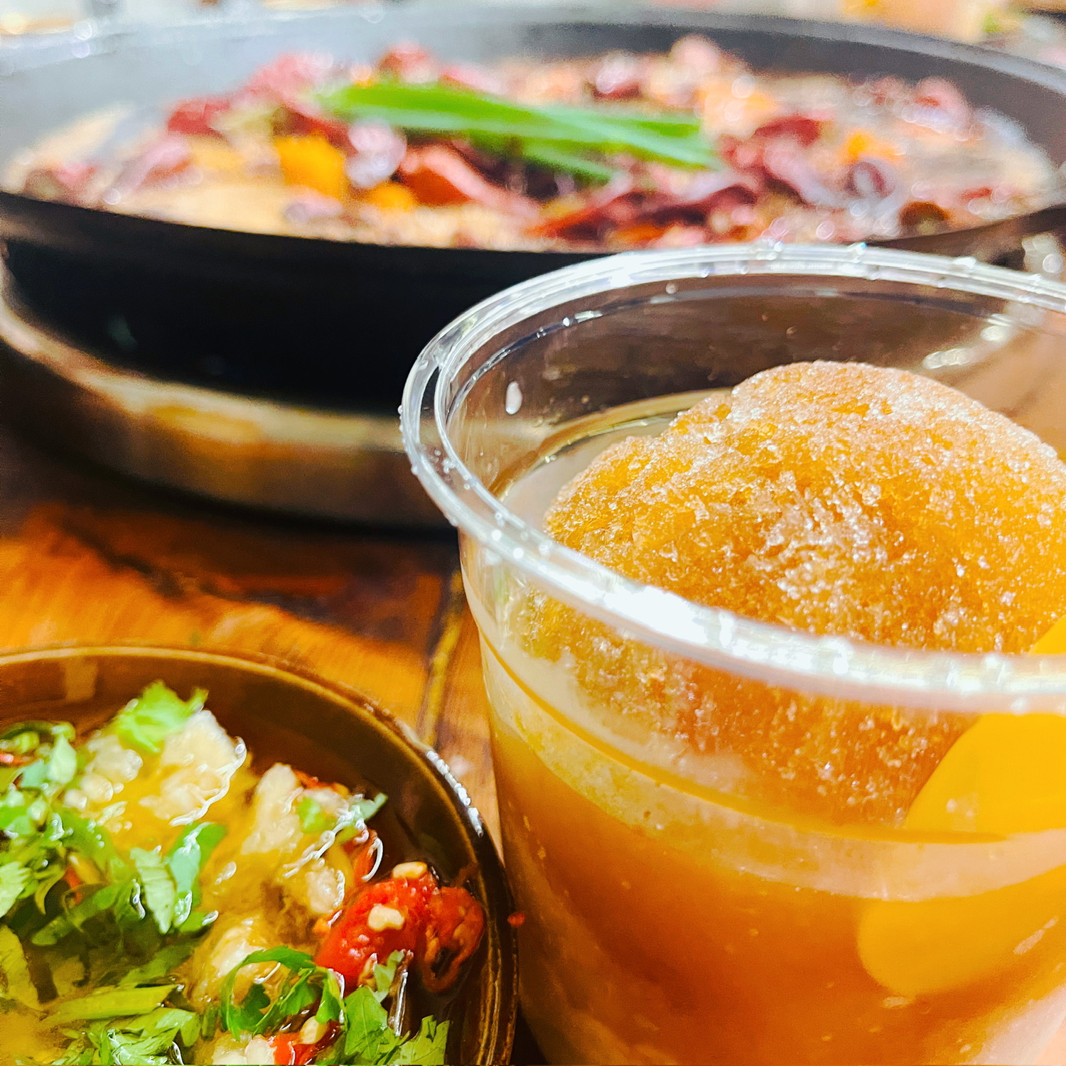 锅底味道嘛,我觉得中规中矩,比有些网红店味道好些罢了。那个冰汤圆真的可以不用东那么硬,一个塑料瓢儿都担怕会杵烂。最后那个什么特辣牛肉确实是辣的,但是只有辣,没有盐味及各种香料味的辣。