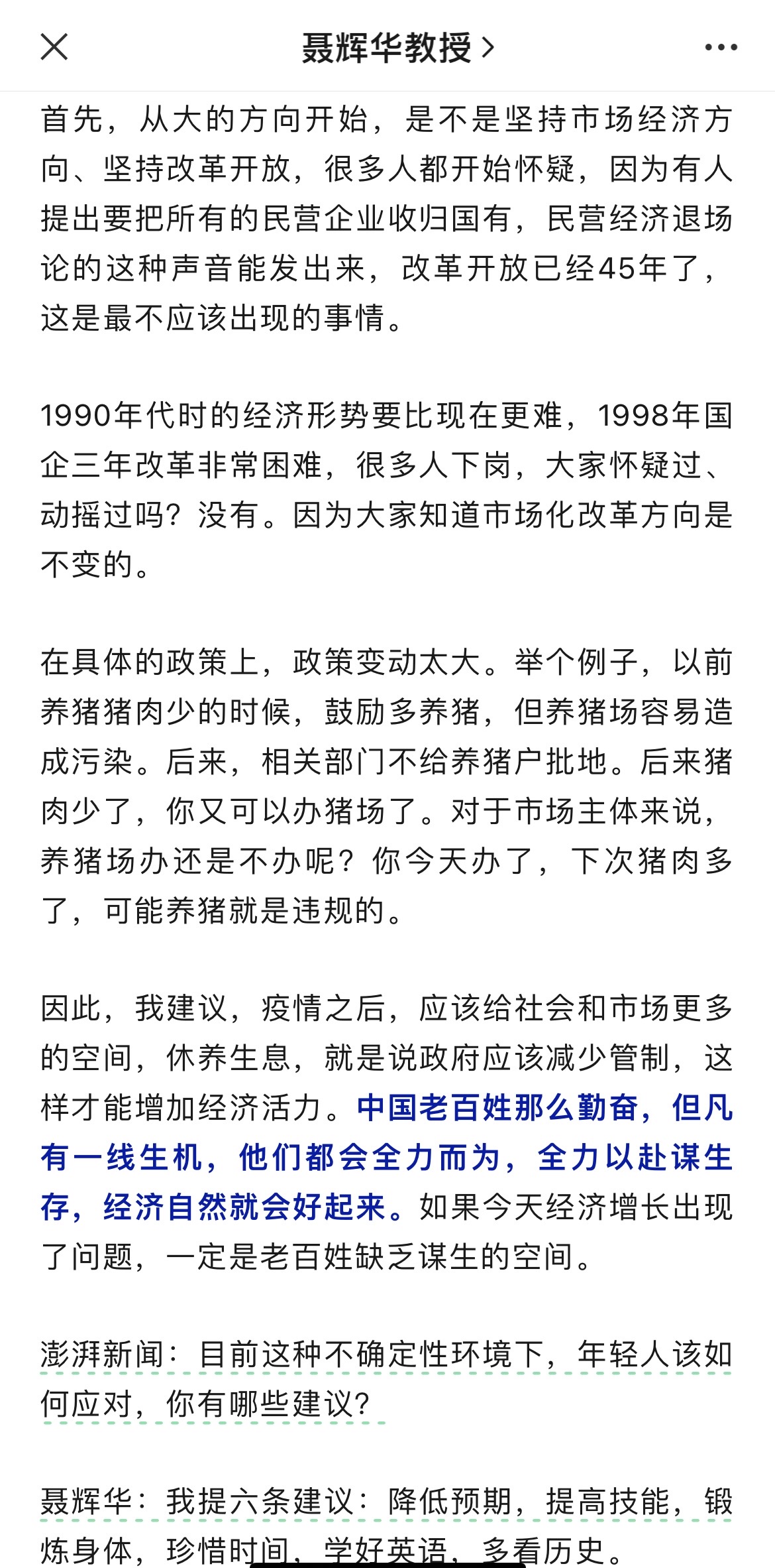 我提六条建议,降低预期,提高技能,锻炼身体,珍惜时间,学好英语,多看历史。