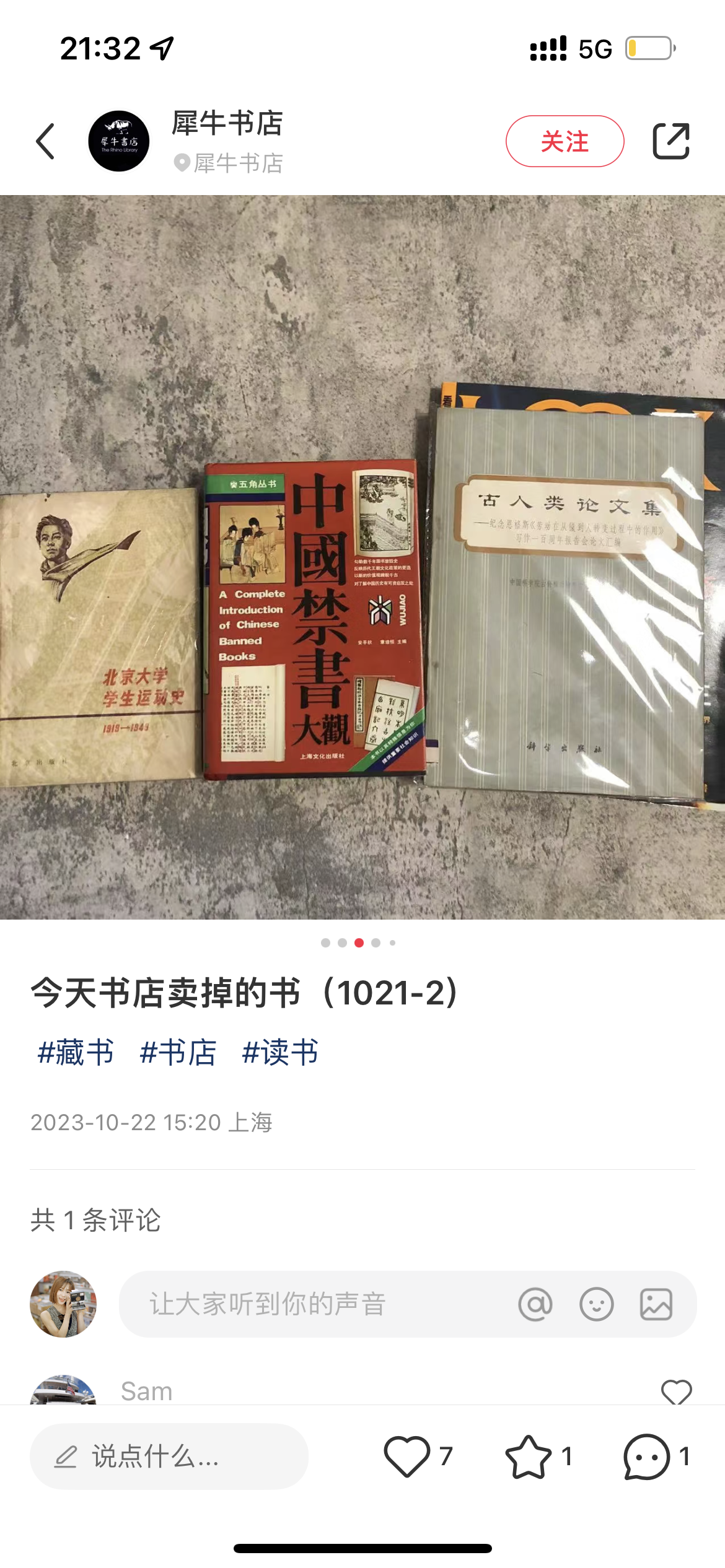 书店的官方小红书书店的宣传方式是:每天拍下卖出的书,以一种非常朴实的宣传方式让书迷看到噢哪些被人收走了,然后恨恨地想这本书这么有趣可以拥有的人居然不是我???