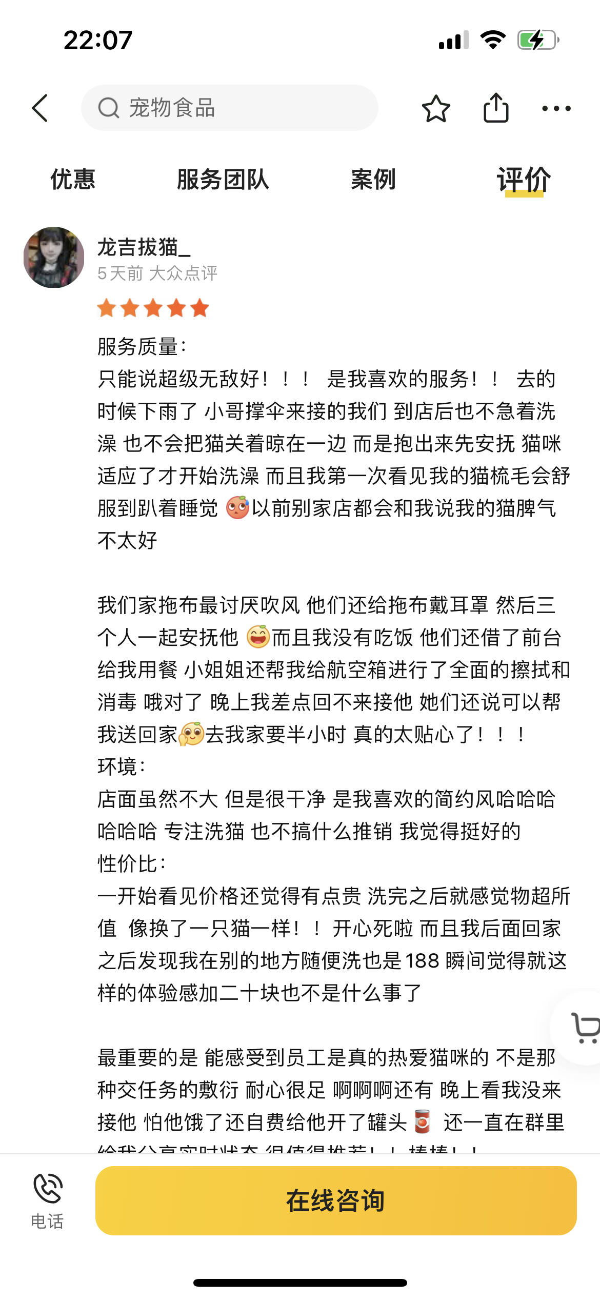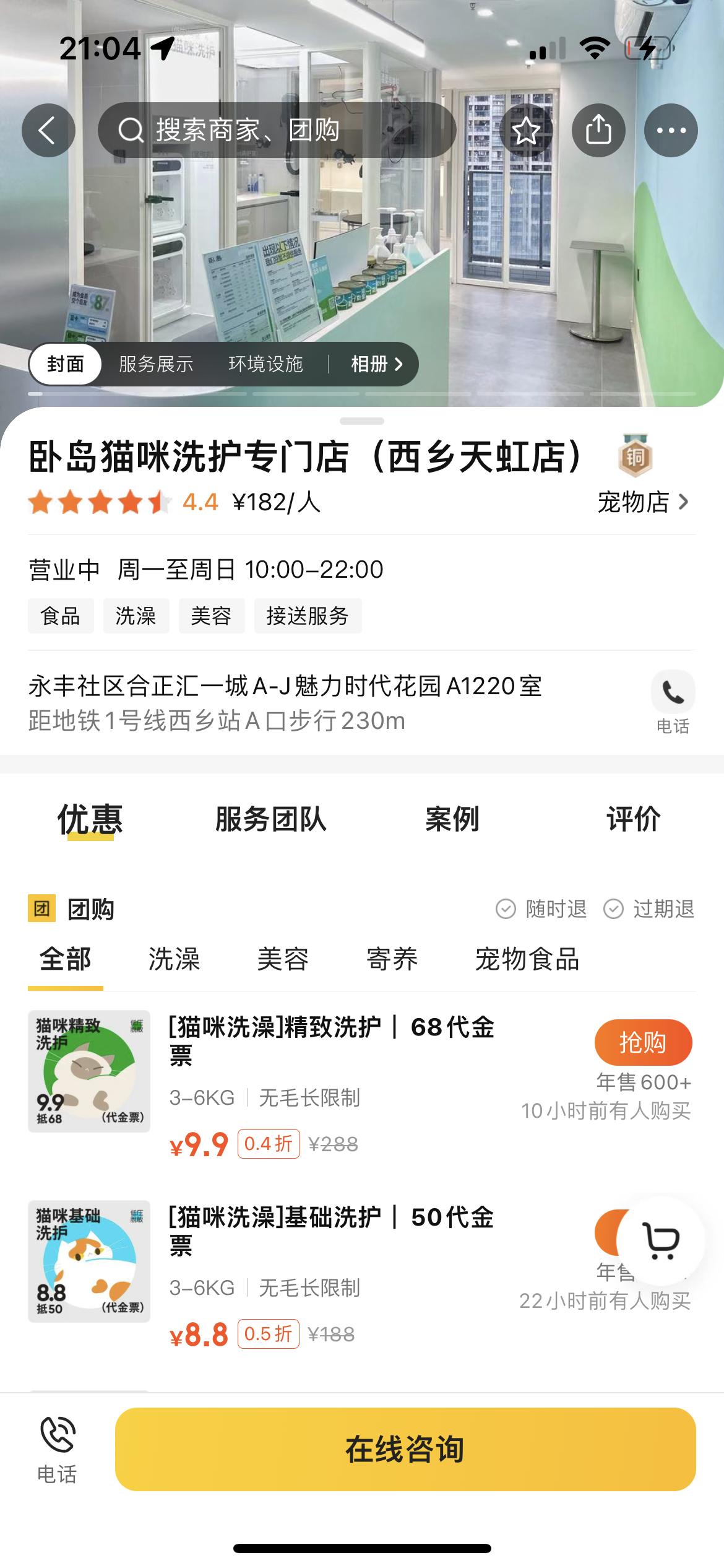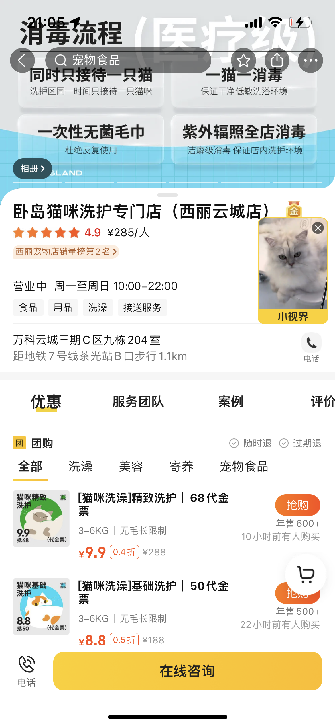 前几天在深圳路过一家专门做猫咪洗护的店,作为一个养了两只猫一只狗的铲屎官,我看到这家店的第一反应是,客单价肯定不低!上美团看了下,人均消费最低182,最高299,果然😂,但是依然生意很好!
