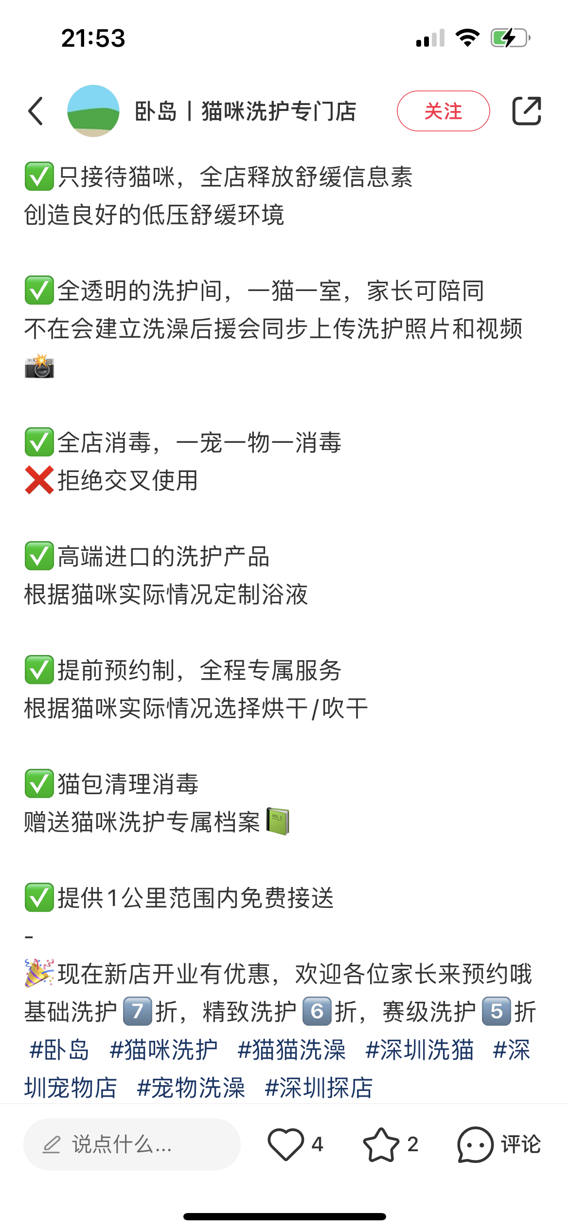 第二反应是,只做猫咪洗护,门店坪效会比做猫狗都接的要高,并且深圳养猫的人比养狗的多,毕竟多数打工人没空遛狗,市场肯定是有的,真机智啊!!!