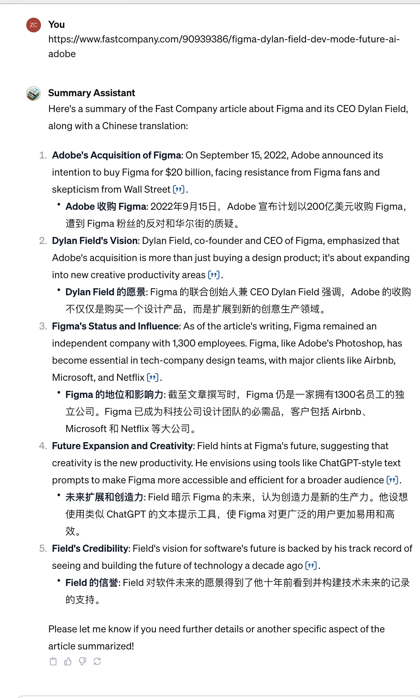 3. 「Summary Assistant」,就是很常见的输入文章/视频链接帮你生成总结(没啥新意,随手搞的一个)