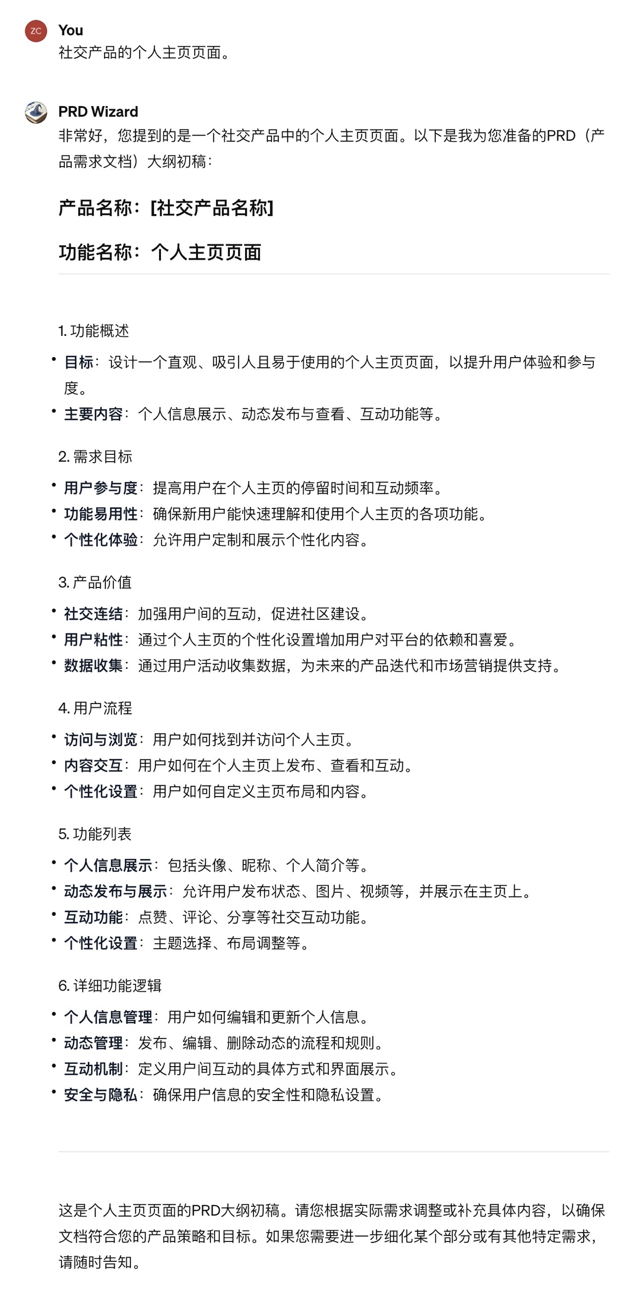 5. 「PRD Wizard」,描述需求一键生成 PRD 大纲
