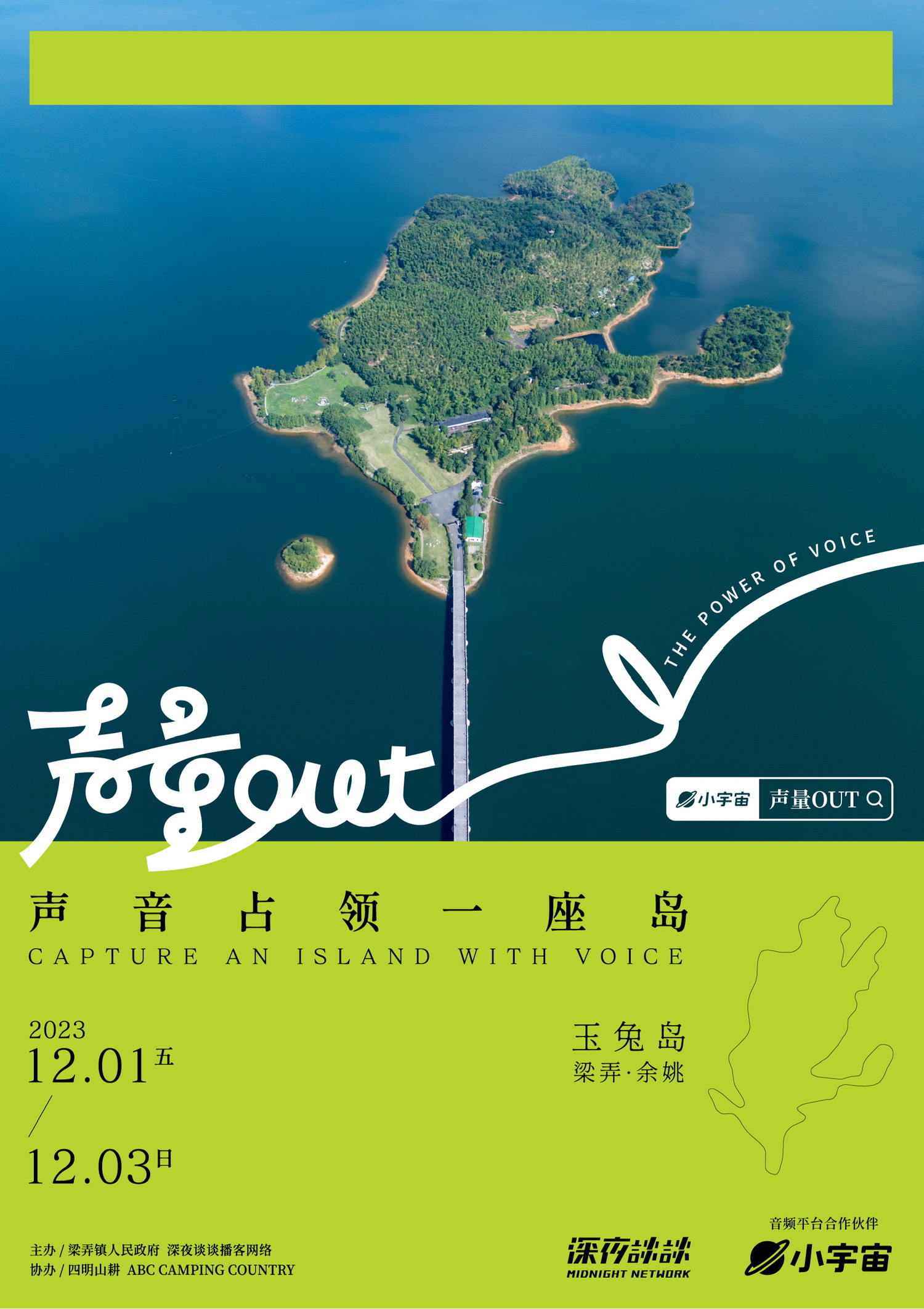 12月1—3日,我们的老朋友「深夜谈谈」将在宁波·余姚·玉兔岛举办「声量OUT」大型播客线下活动,各地主播与听友们又有相聚的机会啦!去一个桃花源般的无人岛,共度一个又野又暖的周末~