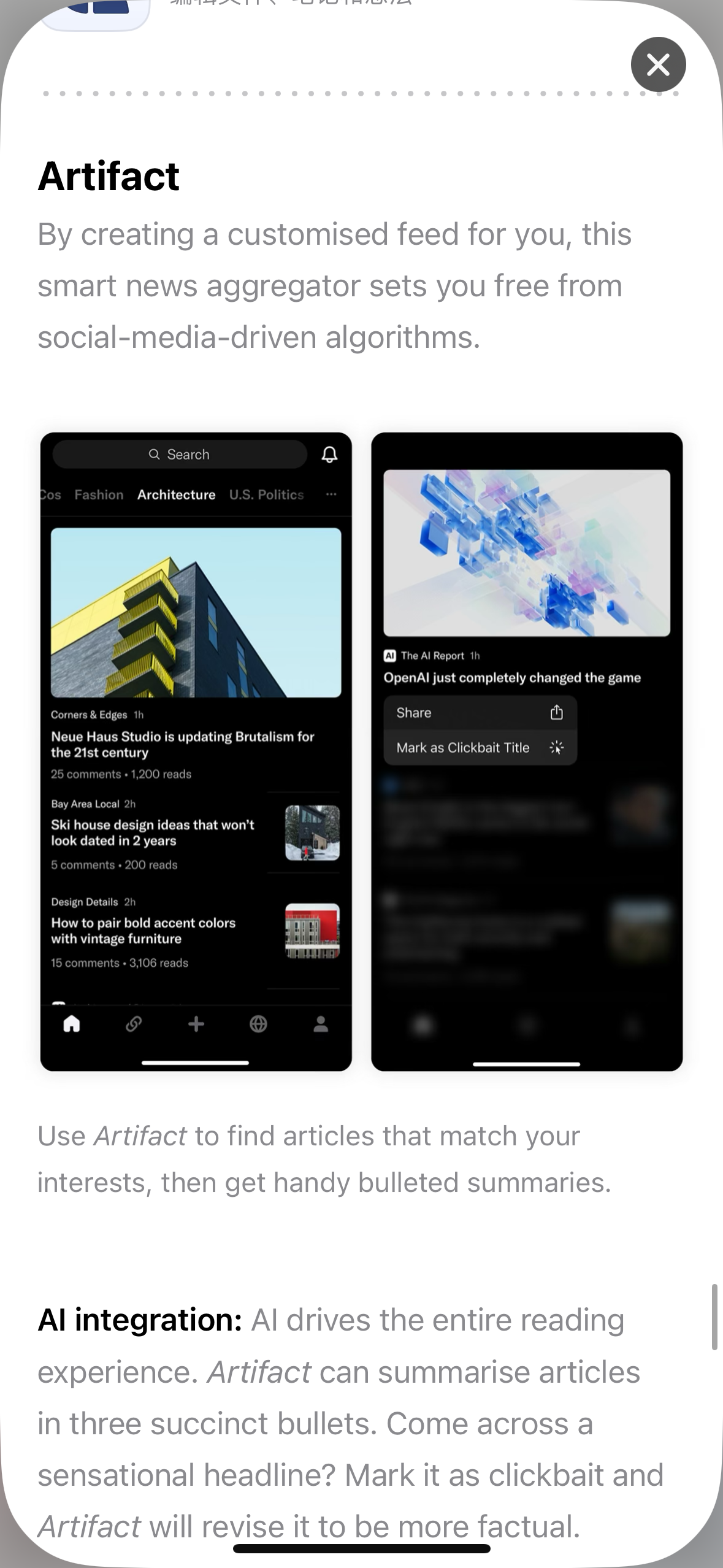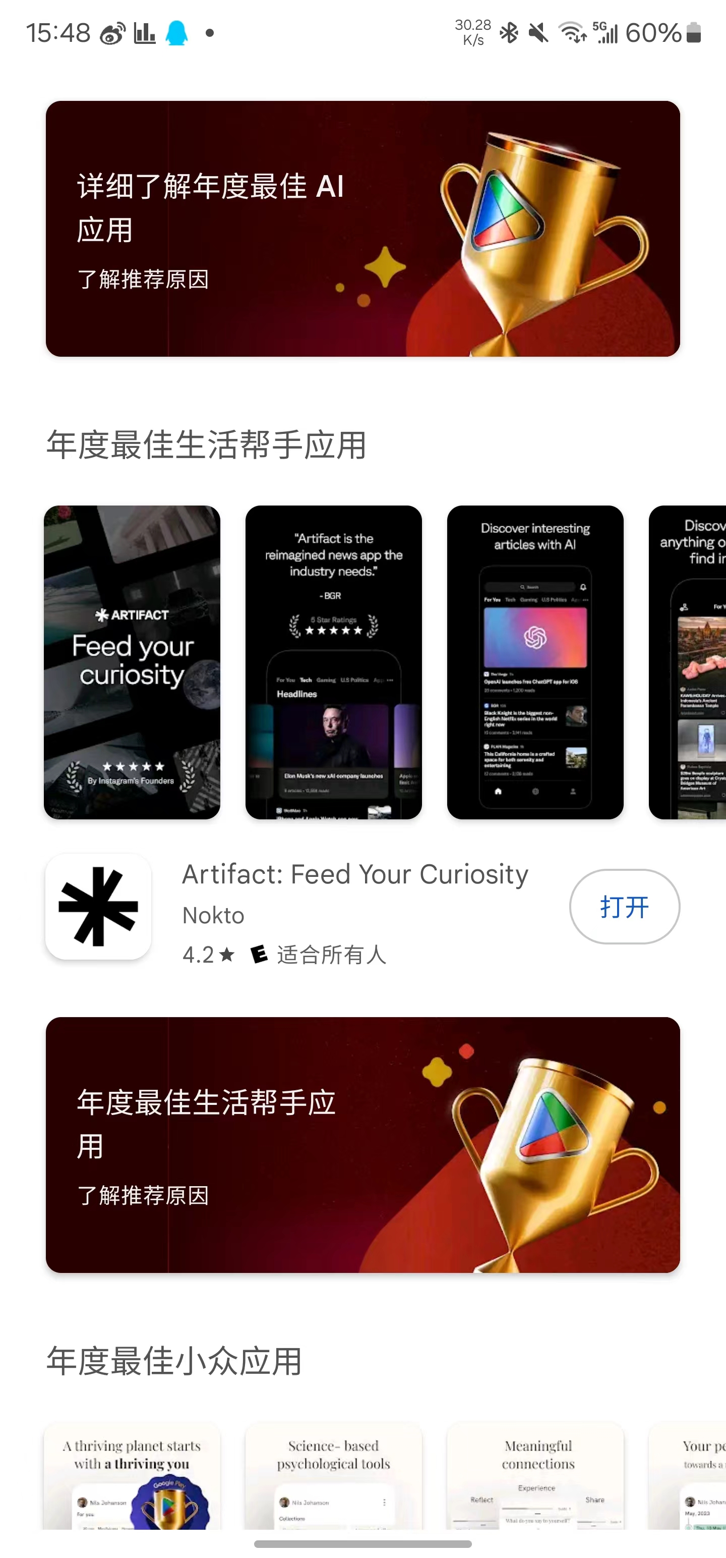 Instagram 两个创始人打造的美版今日头条 Artifact 今年也悄悄的上了 iOS 和 Android 双平台年度最佳子榜单。