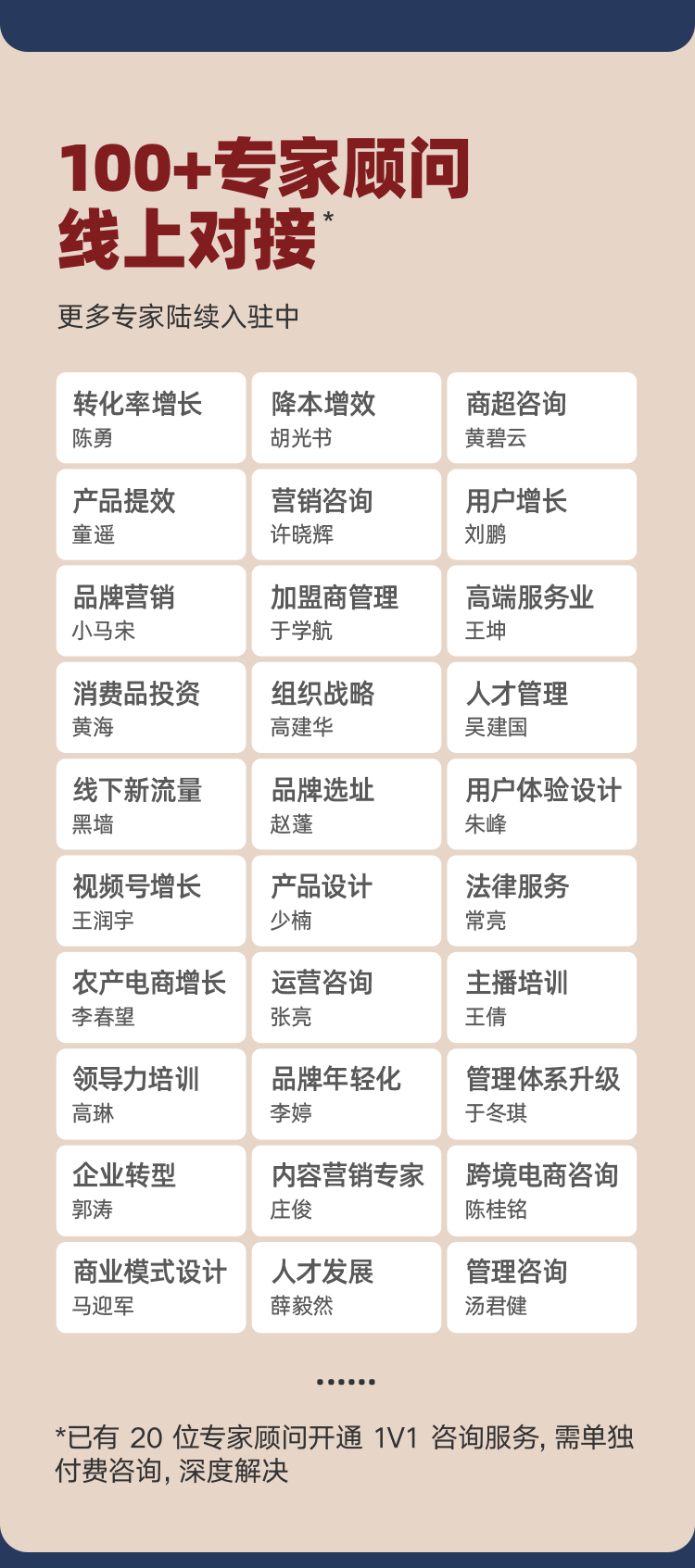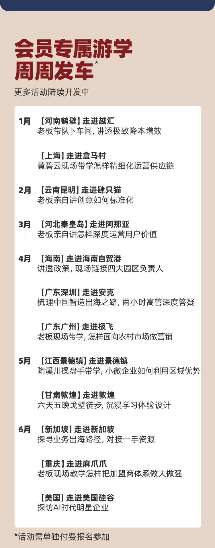 游学、顾问、商学院,本质上都是目标客群的再售卖,只是以「有门槛的服务」作为包装,进行再次的付费转化,在这个环节上「价值交付」很依赖团队的细活儿,需要满足客群的预期,这不仅仅是简单对接下对应的服务渠道就行,而是拿捏内容服务的「稀缺度」「匹配度」「服务质量」等综,也是比较容易出口碑问题的地方。