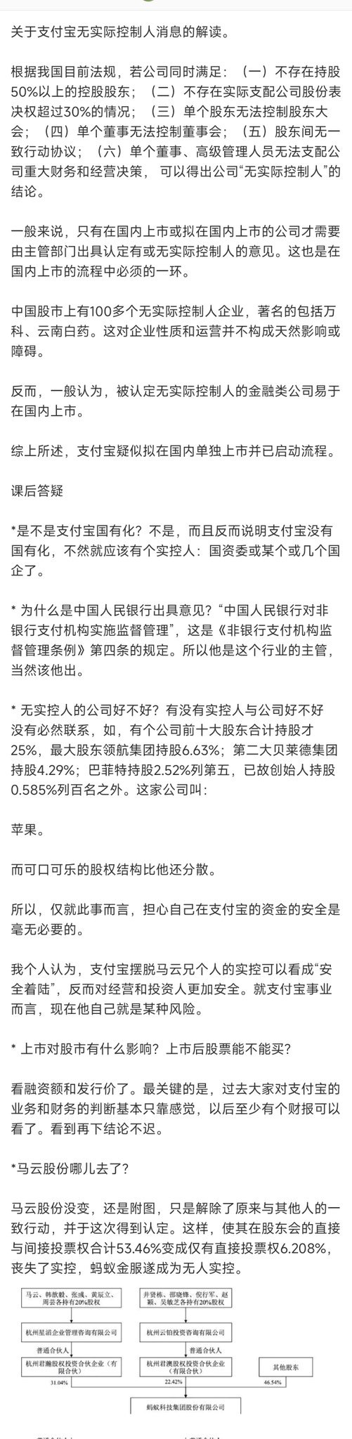 支付宝无实际控制人的解读,原来如此