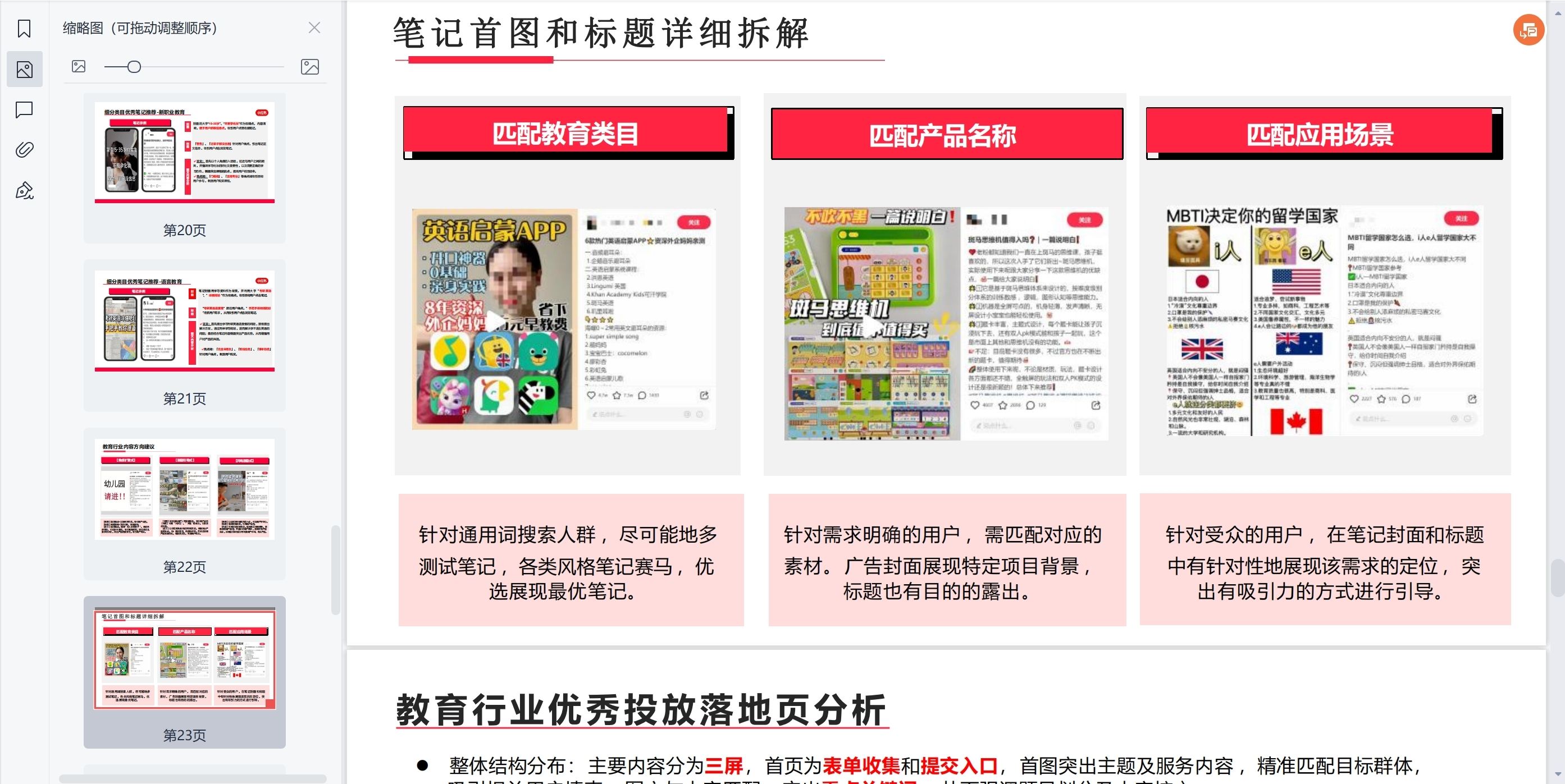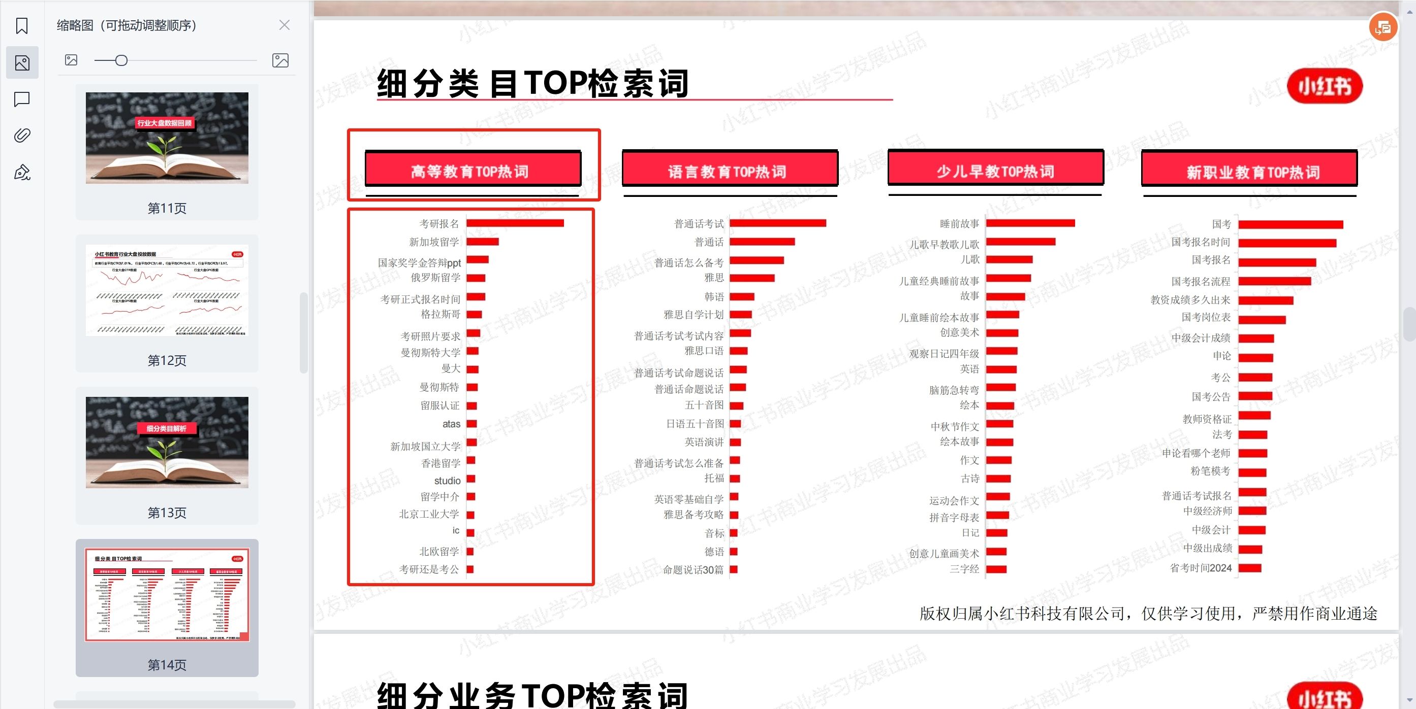 举个例子,你应该怎么用这个宝藏资源,以小红书10月的教育赛道月报为例:
