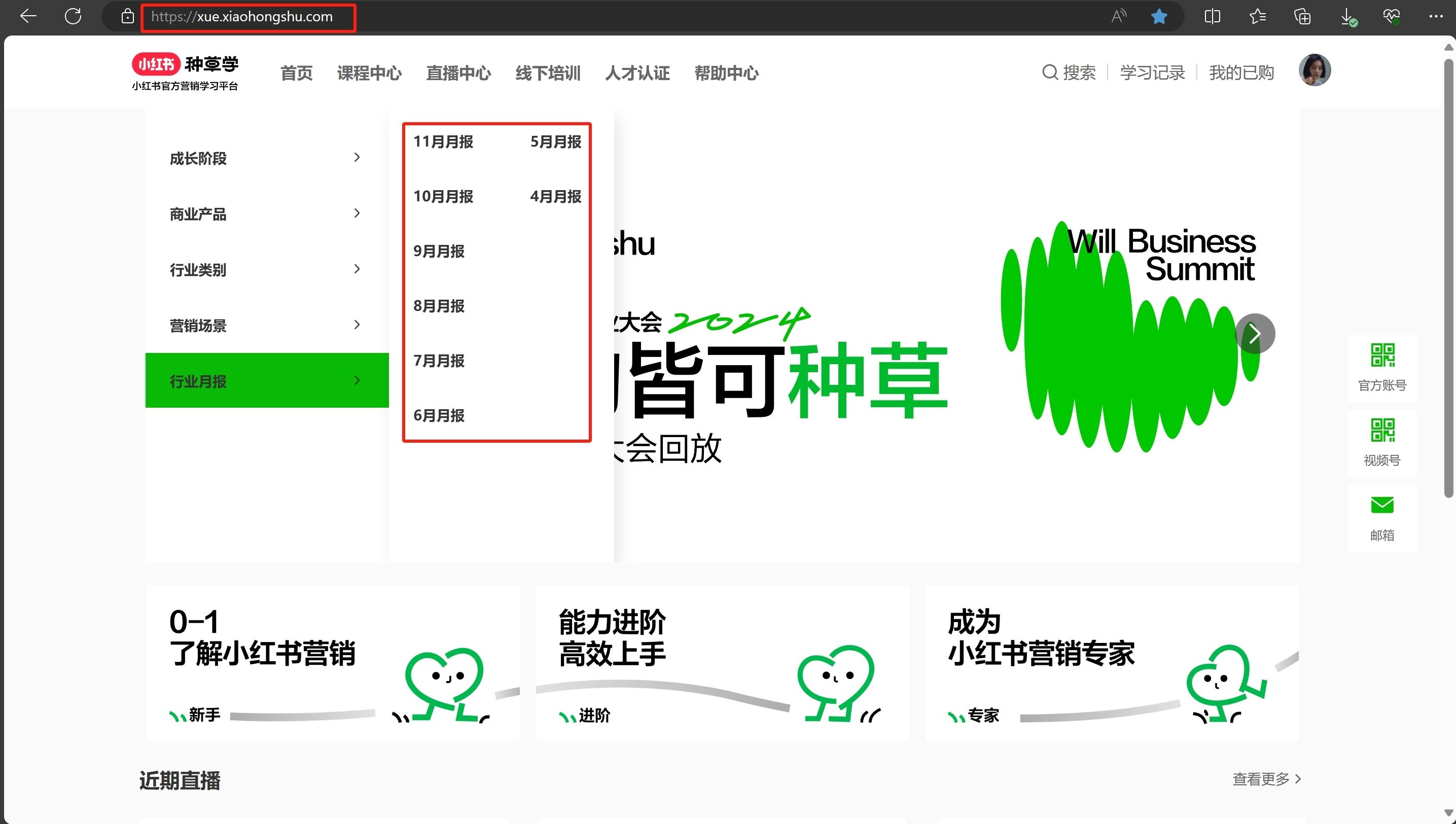 小红书种草学官网每个月都会发行业月报。
