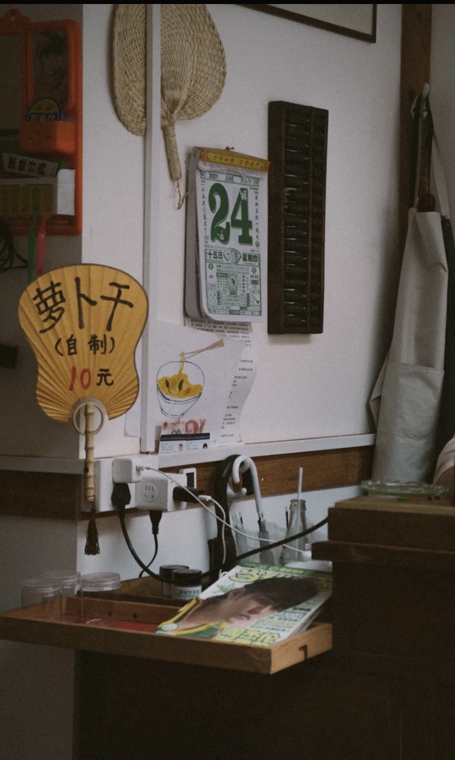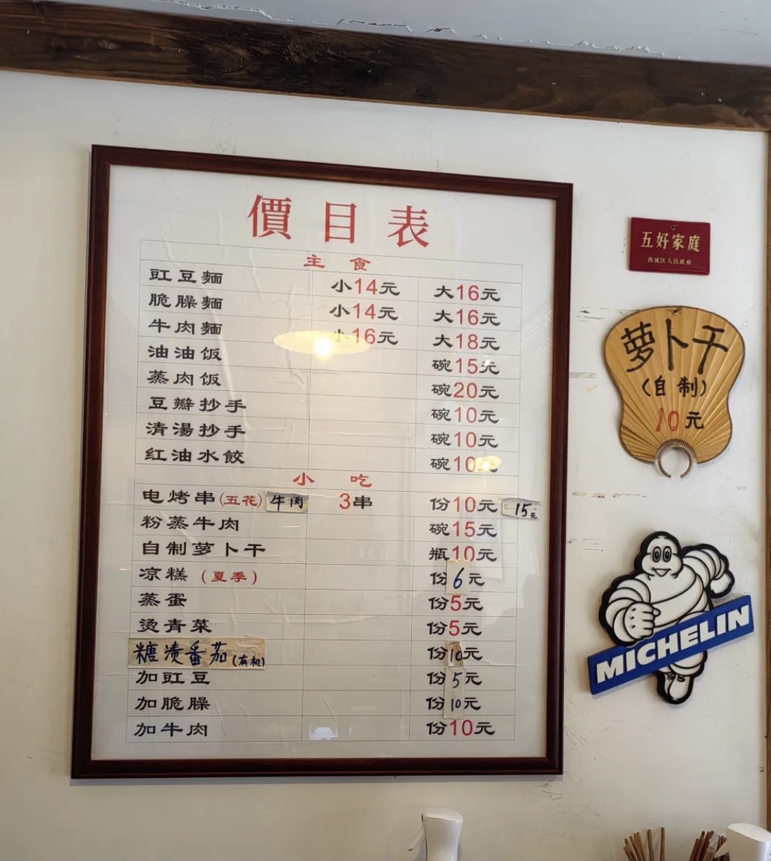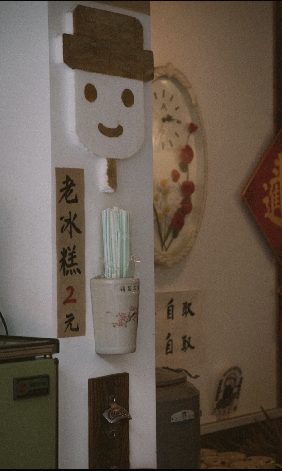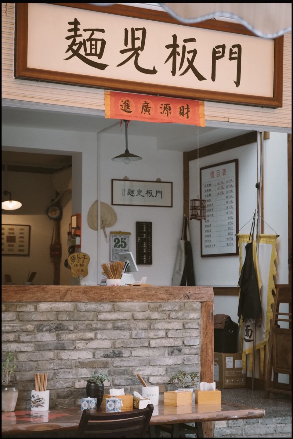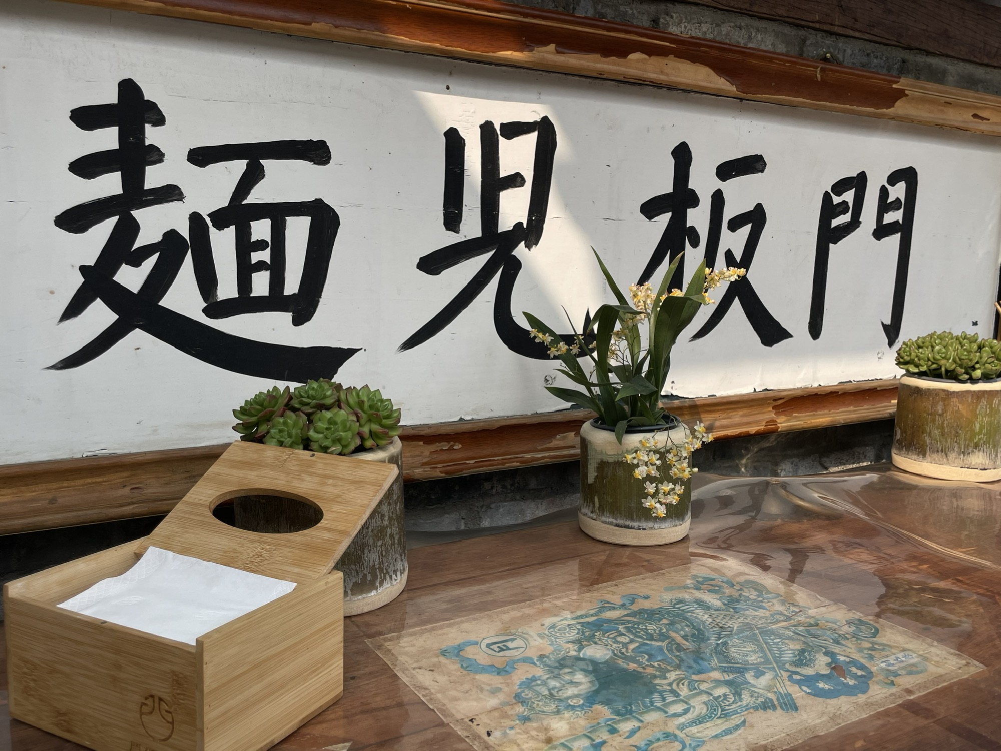 最后才说环境,满满的80年代风。角角落落都能看得出用心,每一个物件都有生活气息,而不是那种俗气的、刻意的营造。旧门板儿当桌子、包浆的条凳、一屁股坐下去吱嘎作响的椅子、印着大公鸡的面碗、竹节做的筷笼、电烤的肉串儿(童年记忆拉满)……几年前第一次去的时候,录音机还在放张信哲的磁带……那感觉,真的时空转移。后来去就没放过了,不知道是不是被顾客玩儿坏了。