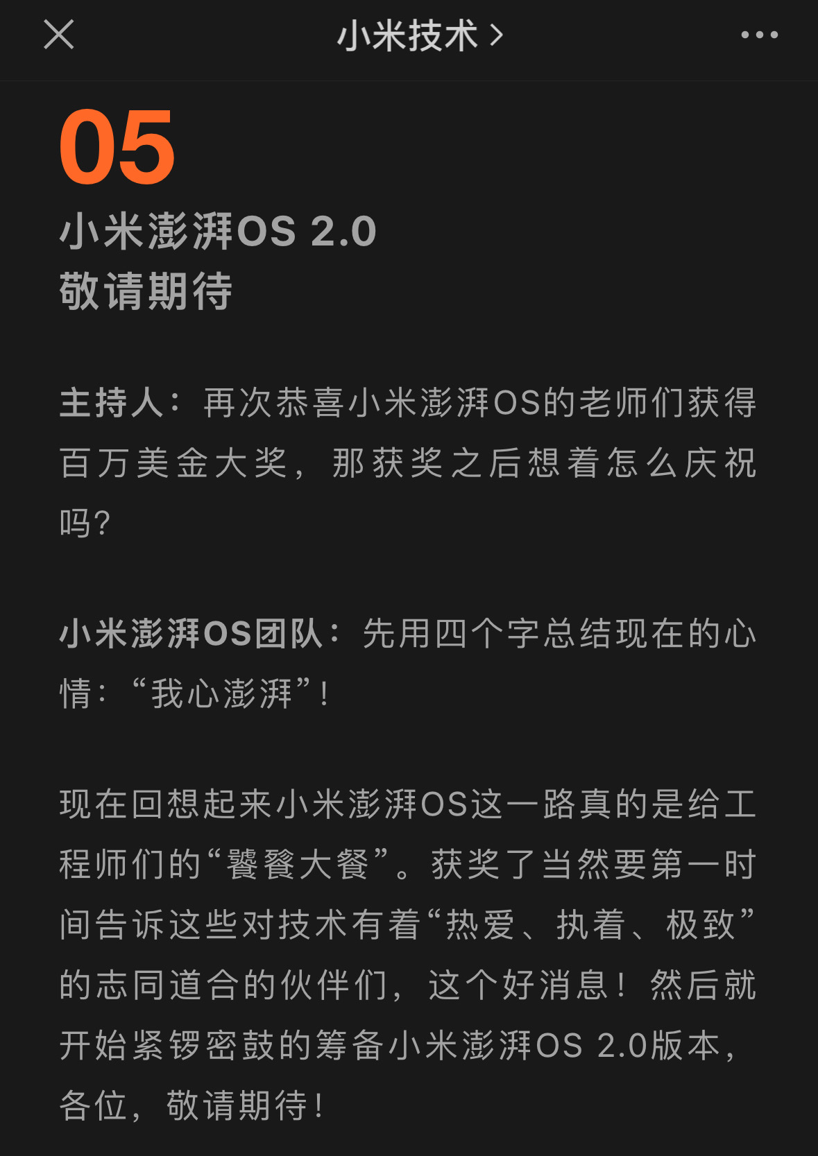 小米澎湃OS 2.0已在路上