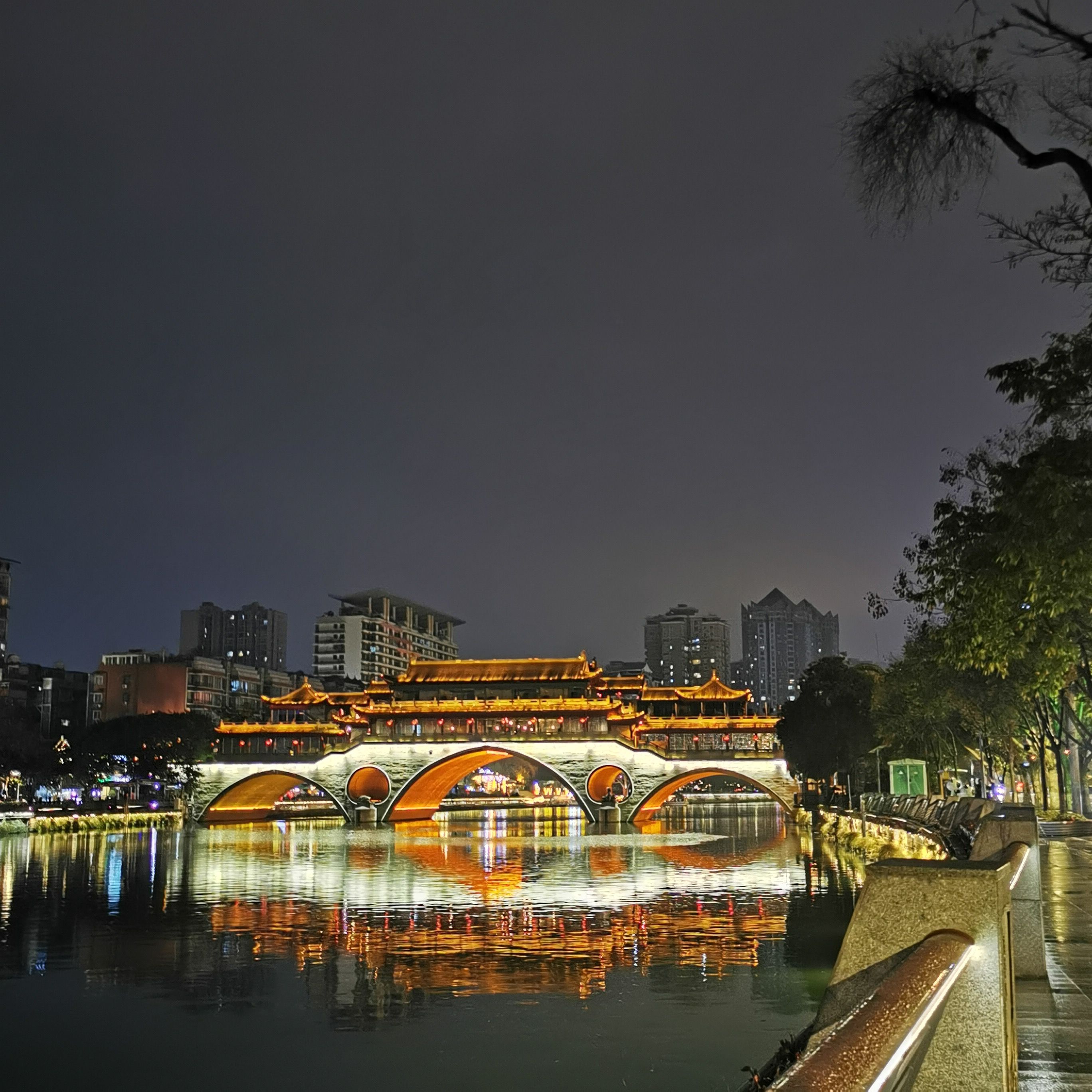 吃太饱了去九州桥和安顺廊桥散散步,晚上11点,居然下起了小冰晶!