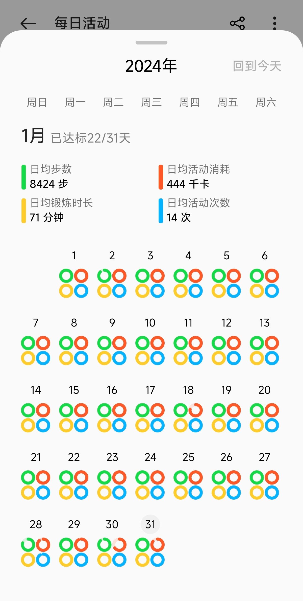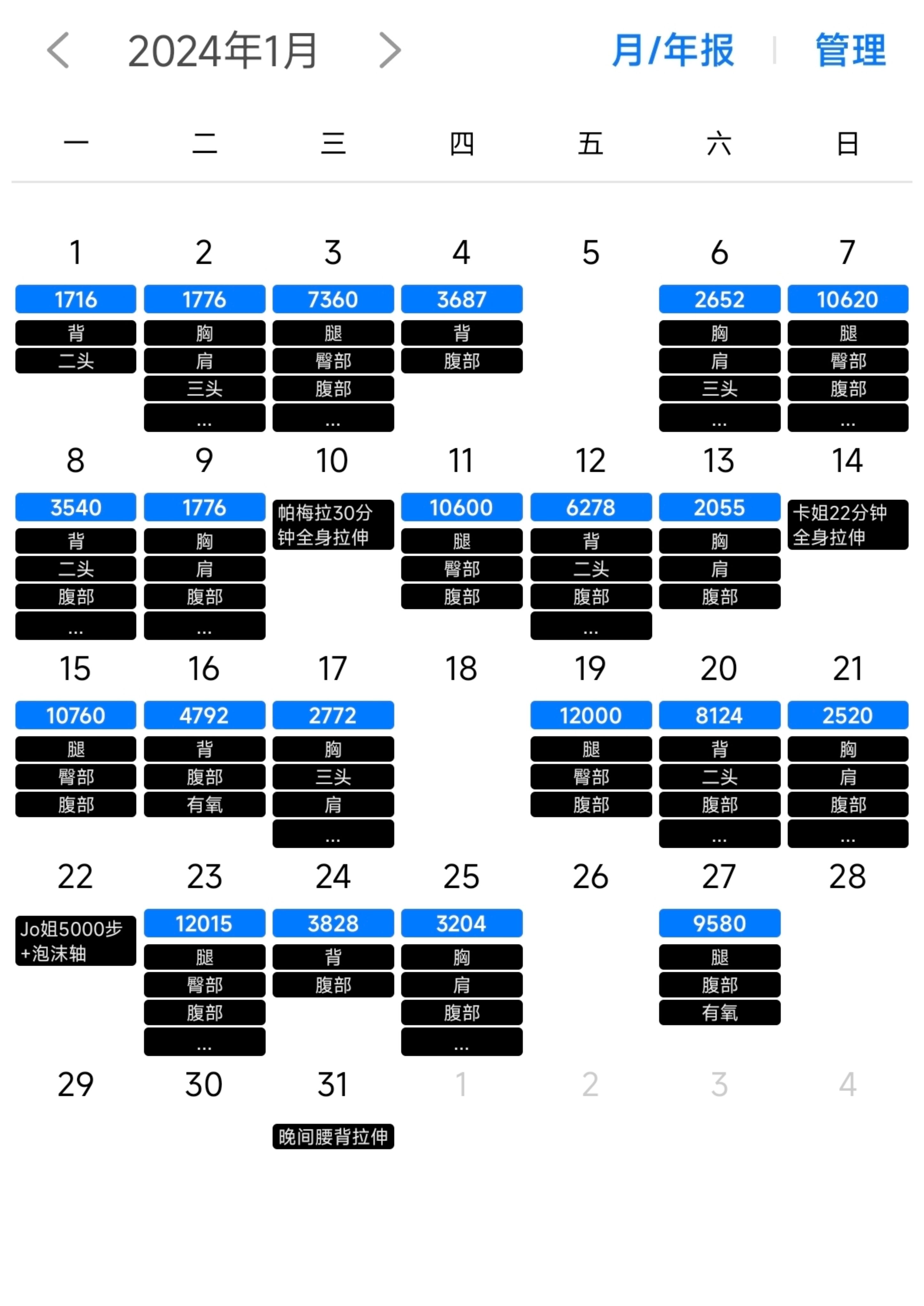 冬天不增肌,夏天变细狗,1月运动收官✌️力量训练21天,7个三分化的循环,举铁总容量120吨;加上平均每天8000+步,日均锻炼时长71分钟。