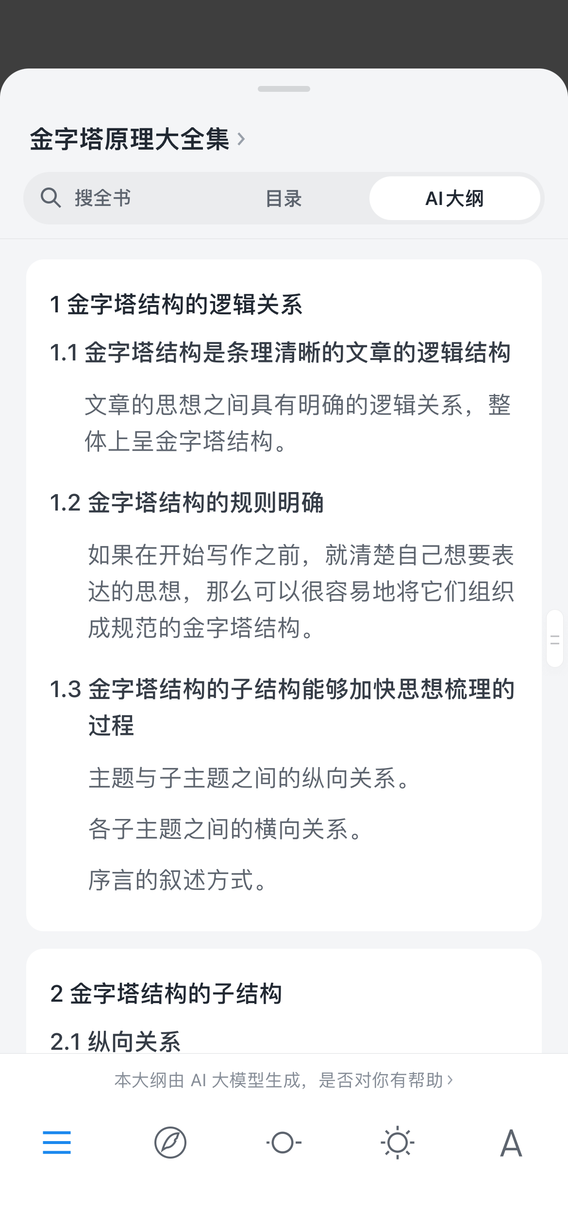 微信读书突然上新了ai大纲,可以自动输出每个章节的主要内容