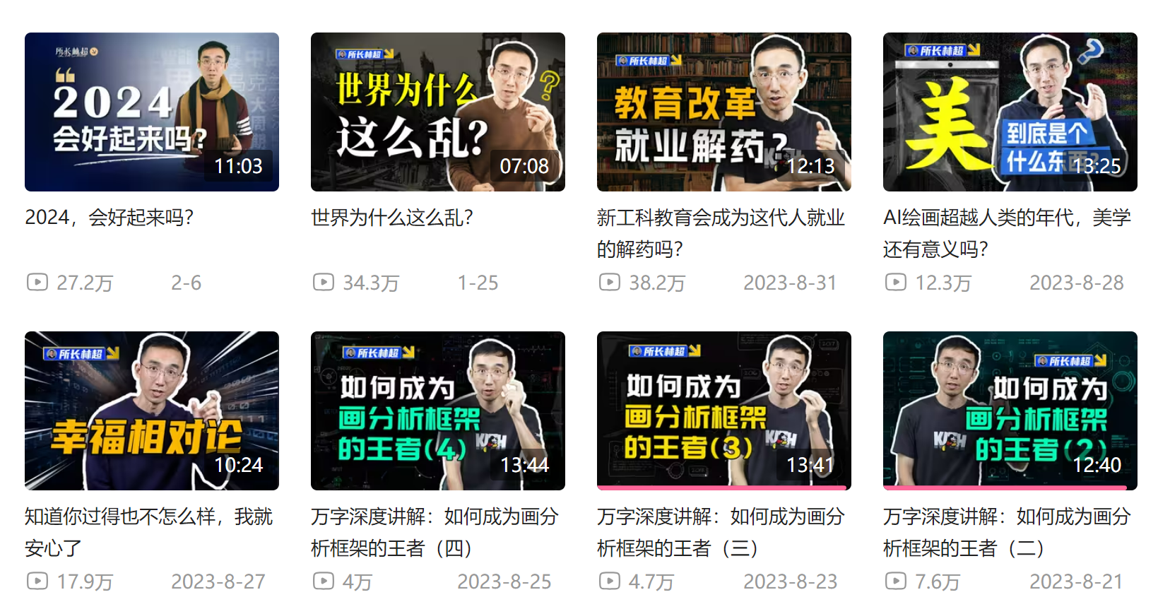 这是我近期才发现的宝藏思维博主,他把对世界的各种认知娓娓道来,不同于其他博主,他会呈现出底层的思考模式,视频的制作真的是非常精良,可见投入的精力和成本是很高的,通俗易懂的语言加上动画,很容易就能理解。