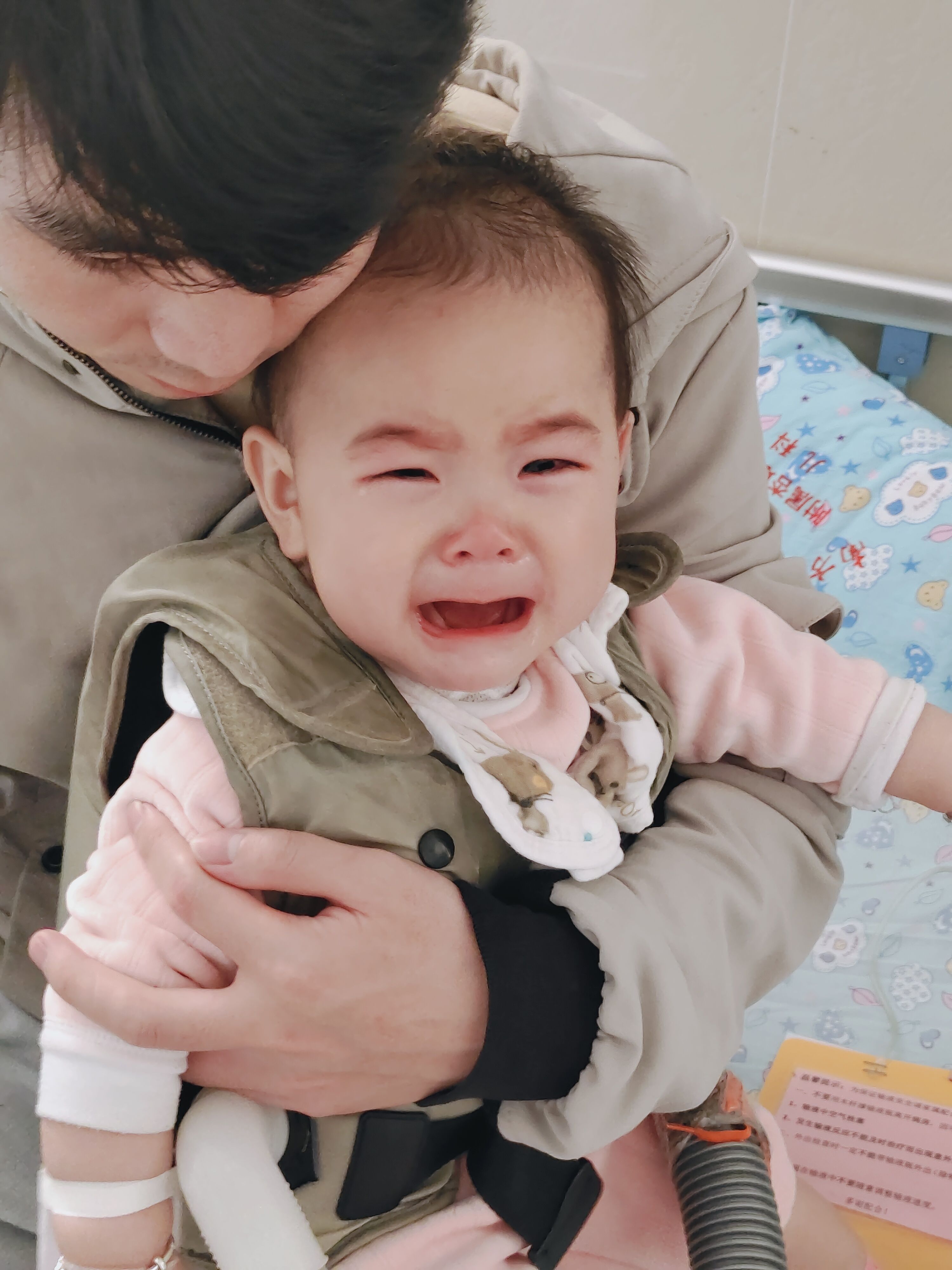 十个月的婴儿血管又细,那个血一直流得不够多,为了让那个血流多一点,小宝一直被护士捏胳膊捏手,陆陆续续弄了十几二十分钟,小宝哭得老惨了,鼻涕眼泪流得没停,老母亲看到都有点不忍心😭