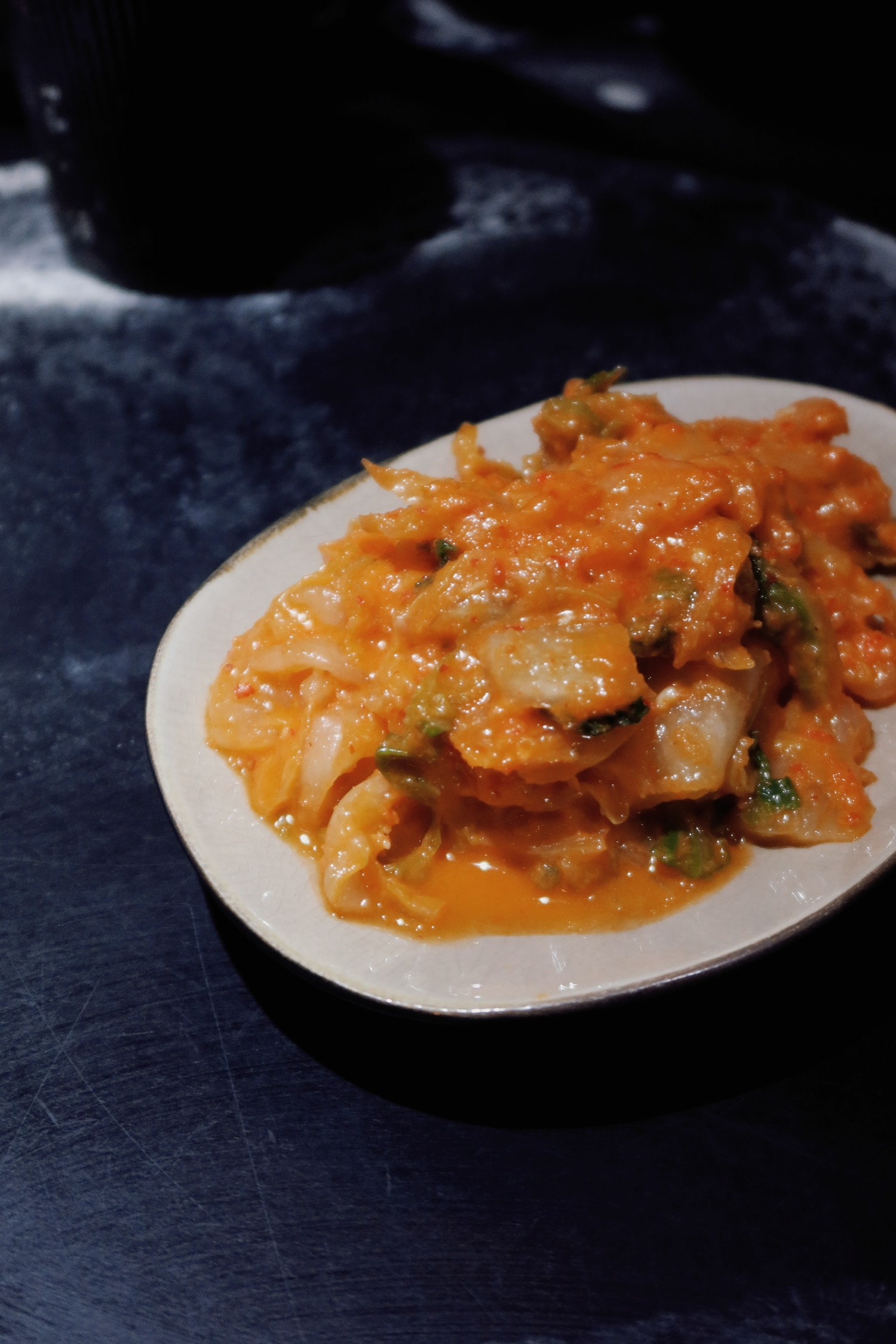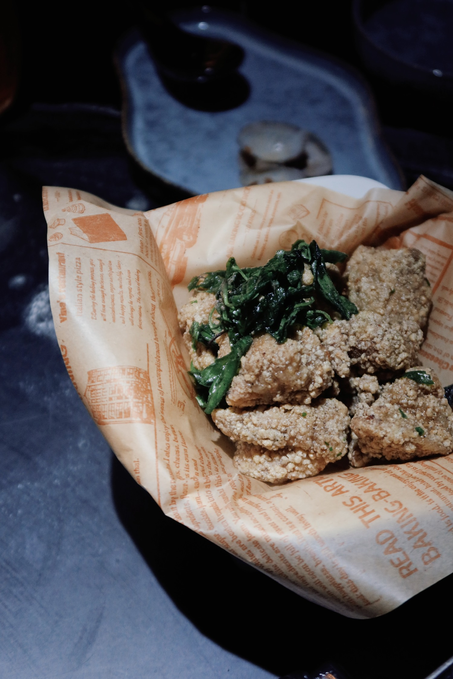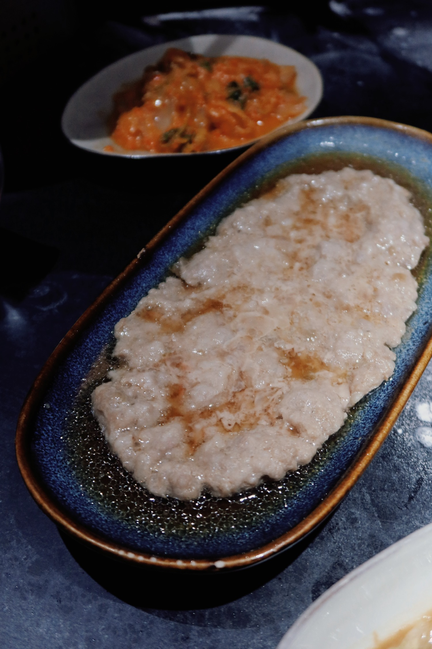 吃到了实惠得不可思议的台菜,人均六十吃到很饱。店里的环境复古简单,有一点昏暗的蓝灰色调,不远处的明厨看得见忙碌的身影。菜品整体都鲜香美味,能够吃出店里调味的细节。泡菜和辣炒蛤蜊开胃(今天看《半生缘》里也有在吃蛤蜊)盐酥鸡正宗,台式糖醋鱼是之前没吃过的做法,鱼肉鲜嫩,似乎是炸过之后加蔬菜与酸辣汁摆的盘;荫瓜蒸肉饼也是以前没见过的,太好吃了。姜母鸭相比起来无功无过一些,不算惊艳,但令人满足,配的腐乳汁很喜欢,腐乳生菜也很好,比豉油生菜更好。以往对台菜的印象是分量少,但这次每道菜量都挺多,2-3人套餐能让四个人吃得很饱。
