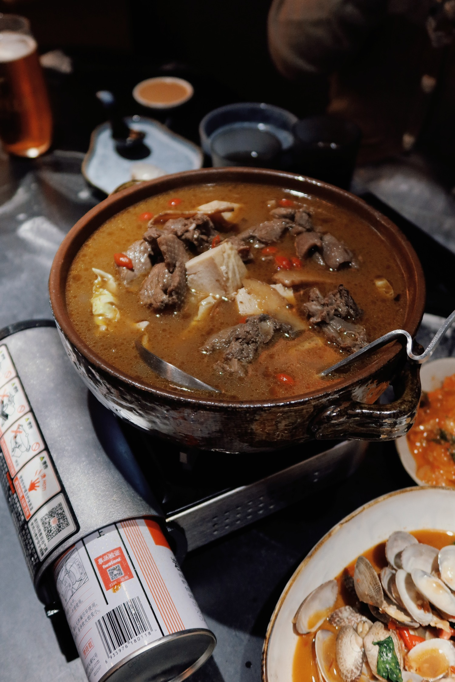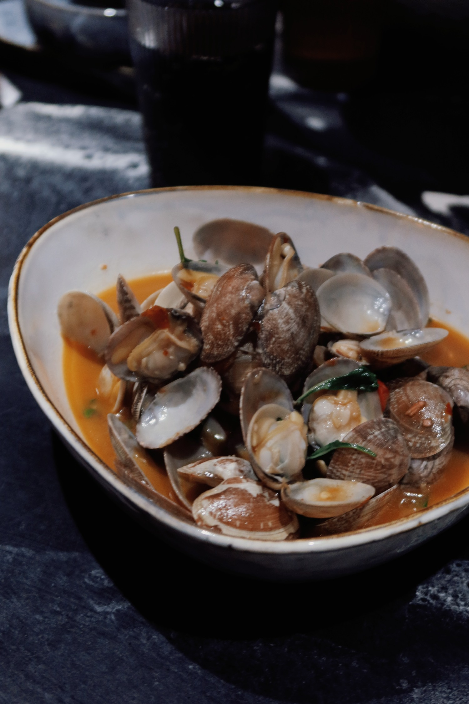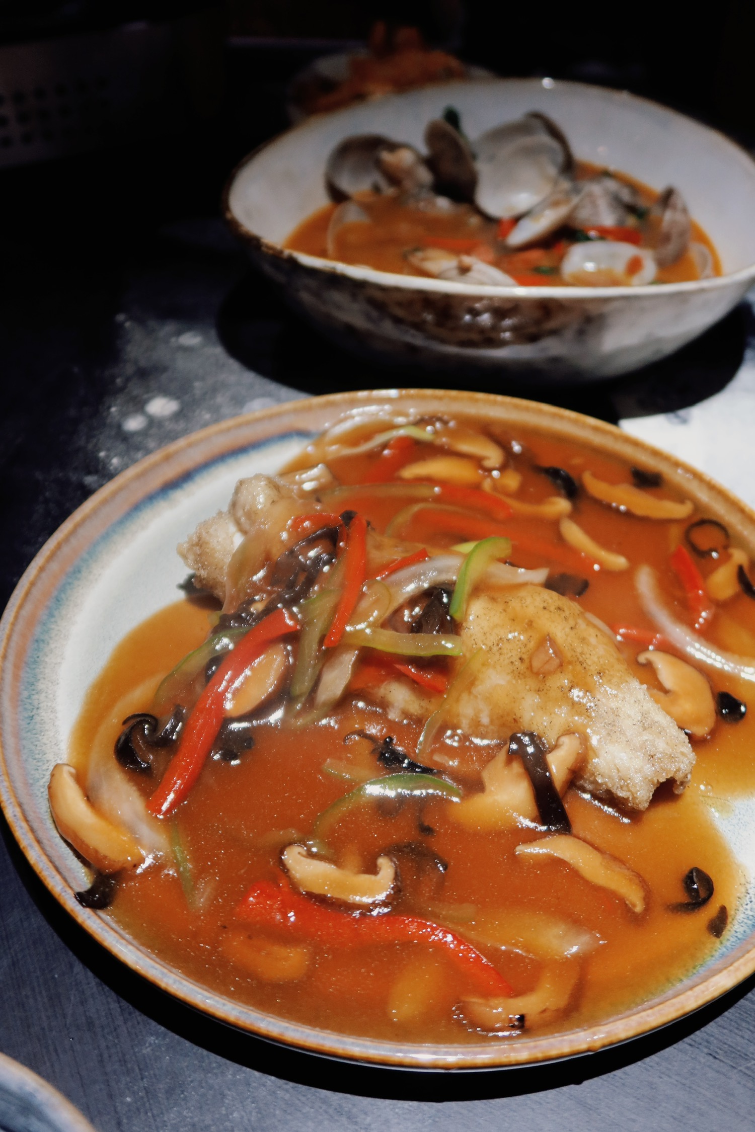 吃到了实惠得不可思议的台菜,人均六十吃到很饱。店里的环境复古简单,有一点昏暗的蓝灰色调,不远处的明厨看得见忙碌的身影。菜品整体都鲜香美味,能够吃出店里调味的细节。泡菜和辣炒蛤蜊开胃(今天看《半生缘》里也有在吃蛤蜊)盐酥鸡正宗,台式糖醋鱼是之前没吃过的做法,鱼肉鲜嫩,似乎是炸过之后加蔬菜与酸辣汁摆的盘;荫瓜蒸肉饼也是以前没见过的,太好吃了。姜母鸭相比起来无功无过一些,不算惊艳,但令人满足,配的腐乳汁很喜欢,腐乳生菜也很好,比豉油生菜更好。以往对台菜的印象是分量少,但这次每道菜量都挺多,2-3人套餐能让四个人吃得很饱。